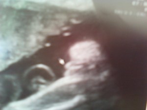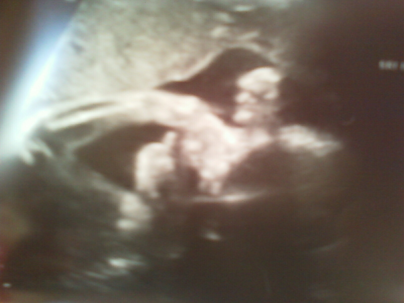 I went back to see the Pregnancy Specialist this morning for the monthtly follow-up ultrasound. It’s always fun to see baby girl, especially when it’s a positive experience. Kaili is doing great! Measuring 1 week ahead, weighing 2lbs. 11 oz. Everything looks fine, Dr. says that the Velementous cord doesn’t seem to be bothering her one bit.