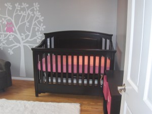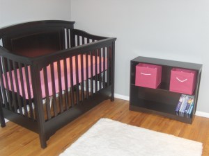 Gordon put together the bookcase yesterday and we almost had the crib skirt on but it needs to be ironed first. So when he gets back from his day off he will be put to work. I also have 2 shelves that I would like him or Shane to hang that will go over the bookcase. I thought that would be a good place for the baby monitor. Here are a few pictures of her unfinished room: