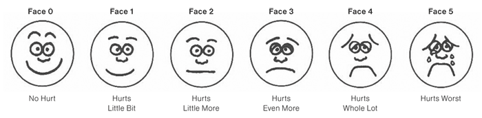I don’t really like that chart. I don’t see pain on those faces. Some look sad and the last two look like they have had food poisoning all day. I personally like this one much better, this guy looks like he is in actual pain: