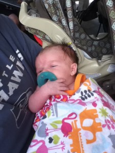 Miss Kaili Sloan is 3 weeks old today. It’s been a bit of a roller coaster this past week as we are dealing with stomach issues. She seems to have trapped gas that makes her very unhappy. We feed her formula and breast milk so now we are trouble shooting are way around to figure out what is the cause of it. When Kaili left the NICU we were given the ready made formula bottles which seemed to work great, then once we were home we switched to the powder form because we had so much of it and it’s a great deal cheaper. That is when we started noticing some digestive issues. I called the Pediatrician and the nurse suggested going back to the ready made formula to see it that helps. I am crossing my fingers that this will be the solution. We are also giving her gas drops after feedings along with gripe water here and there when she is really screaming. I don’t want to jinx anything but so far things seem a little bit better…cross your fingers. It’s the most awful thing to watch your daughter scream in pain and not be able to do anything for her, it makes me want to cry with her.