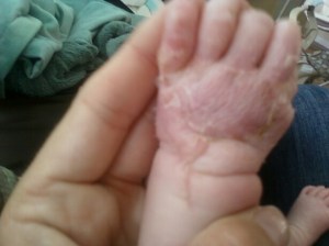 It’s hard to tell where the cut was. Maybe after the skin quits peeling and the swelling goes down it will be visible but right now you wouldn’t notice anything. Has she started sucking her thumb? Does she know what to do with it. Freedom. I’m glad she finally got it off. Another milestone.