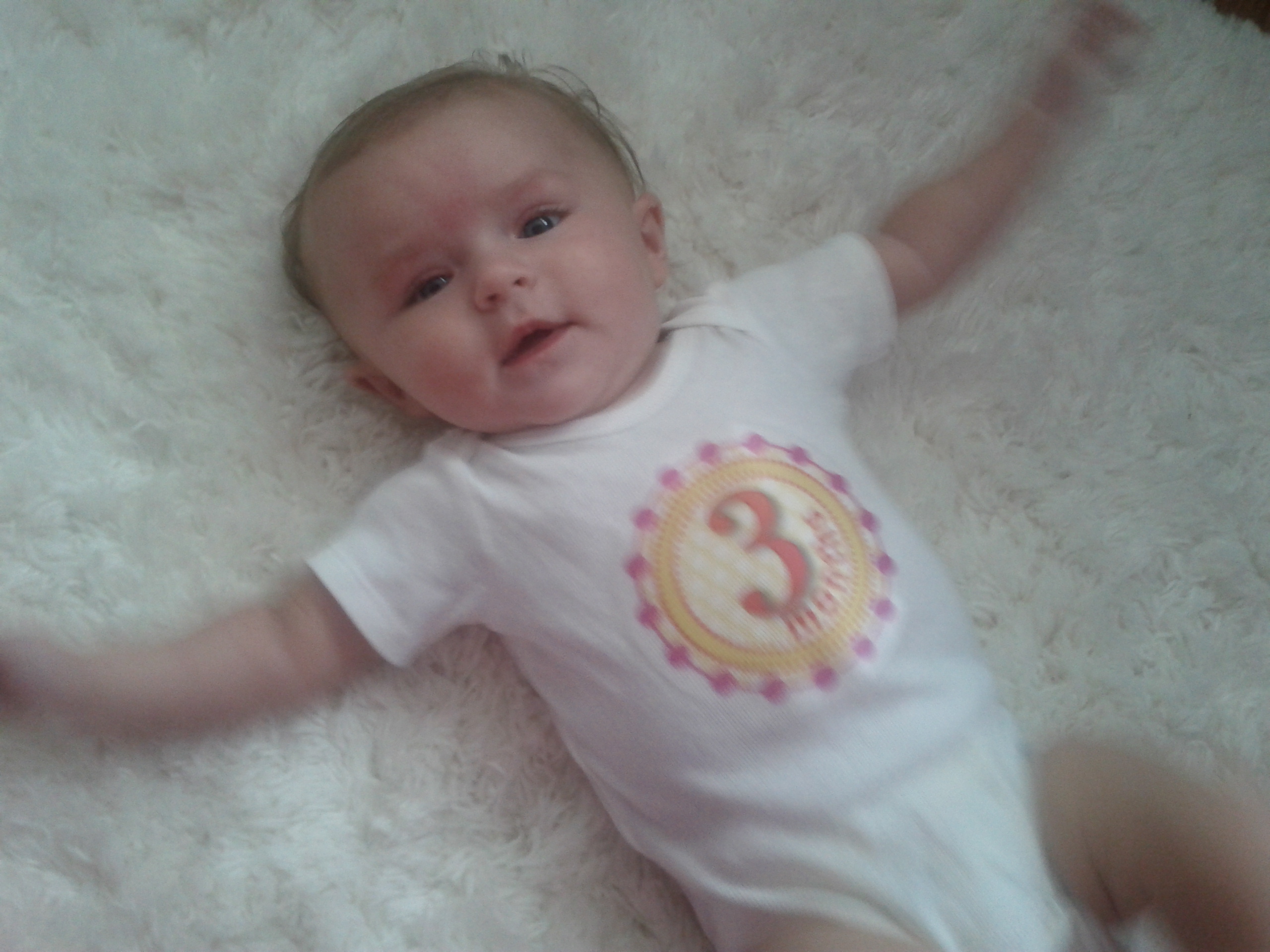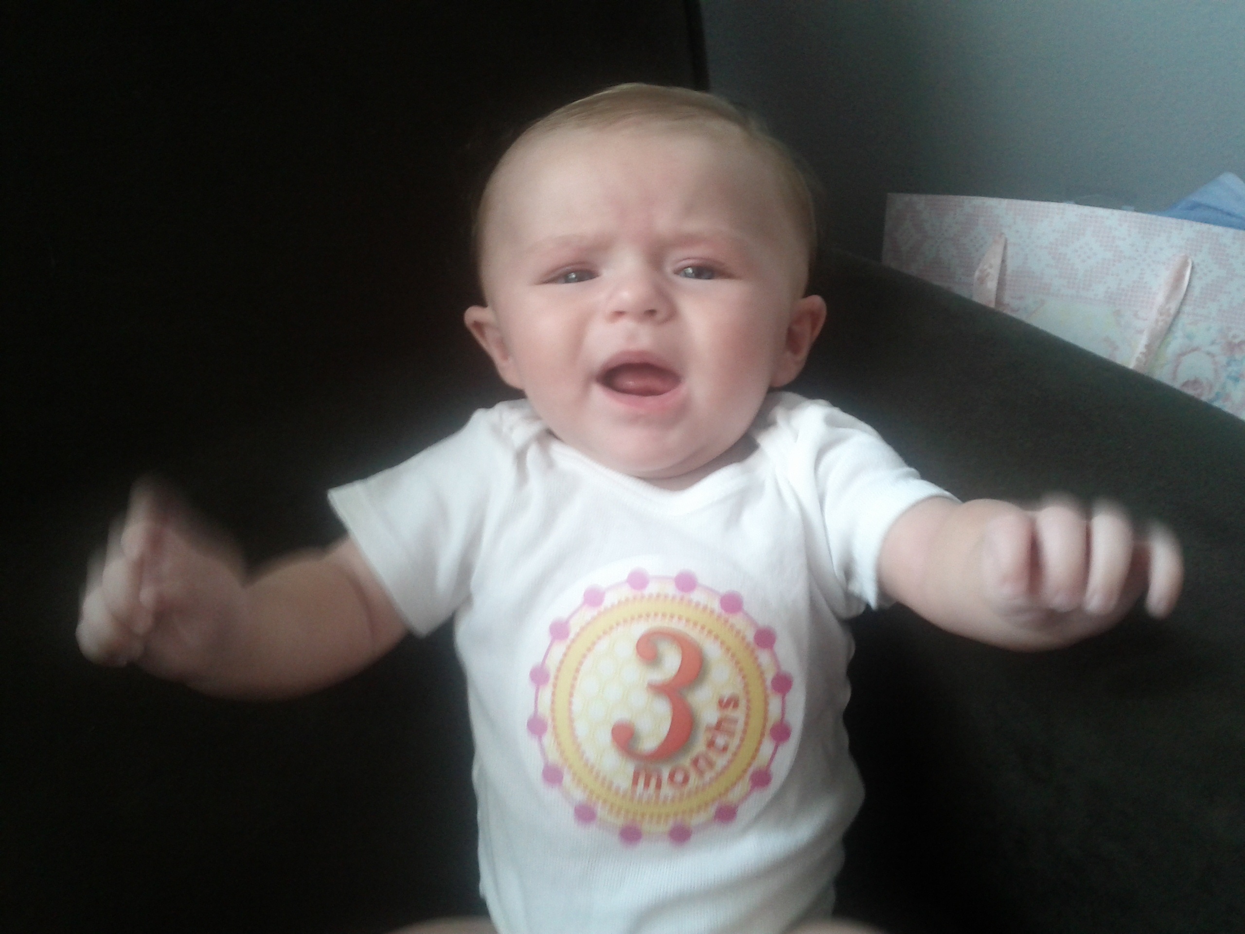Kaili is a strong little girl, she loves to try and stand and will even move her feet in a walking motion. She can push her chest and head up really good now while she is on her tummy. Most of the time she will roll over onto her back which must be a little scary for her because it leads to crying. She loves to hold her feet and will even fall asleep with them in her hand. Her hands are in her mouth if her pacifier is not. Drool is abundant and so is her babbling. Bath time is by far the best part of her day. I have bypassed the baby tub and put her straight in the big bath tub with a little water. She likes to splash and kick and will even push herself around with her feet. She is a little water baby and I will get her into swimming next summer!