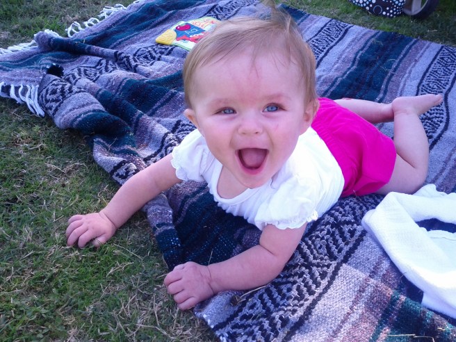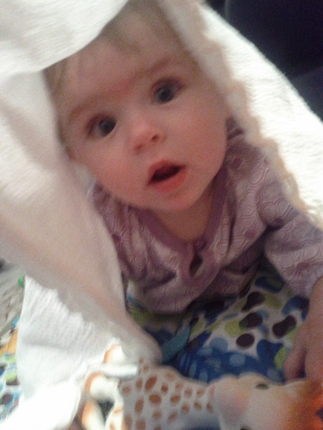 She also gets a kick out of playing Peek a Boo with a blanket. She get’s so excited when you get ready to cover her with it, she squirms around like a fish out of water.