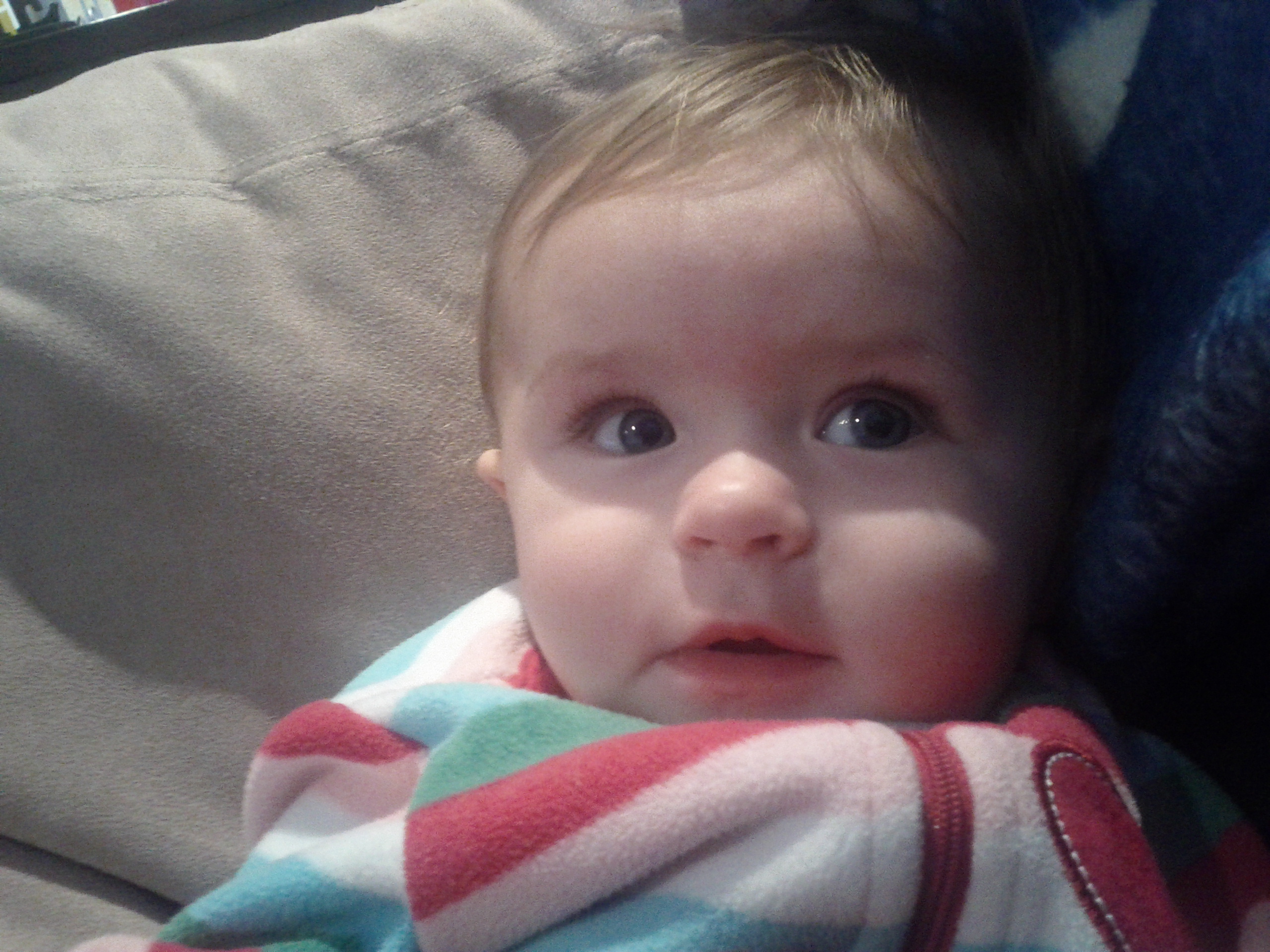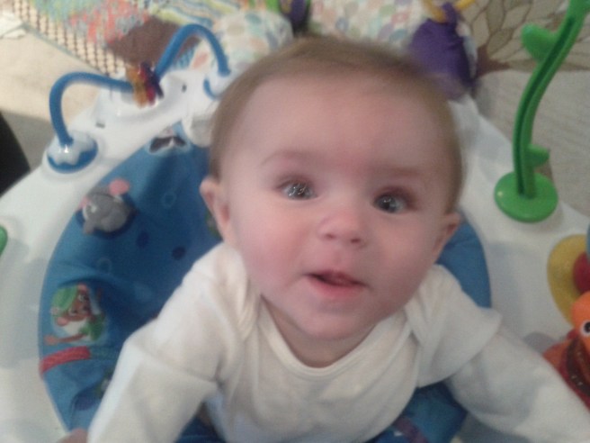 Where does the time go? I swear the first 4 months of Kaili’s life went by so slowly but now she is growing up so fast. She is still such a happy, easy and laid back baby. She rarely makes much noise but has countless facial expressions. She has begun blowing raspberries and thinks it’s hysterical when you pull her socks or pants of quickly.