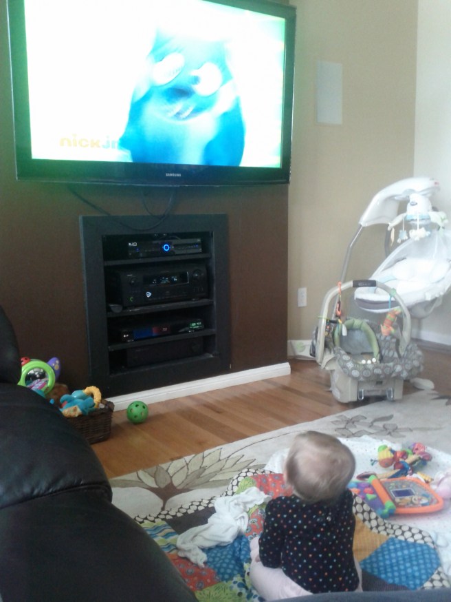 Kaili is getting better at sitting up unassisted. She teeters from side to side and eventually falls back, sometimes with a loud thud to the head 😦 Sitting up gives her a whole new perspective to the world around her. Yesterday I put Yo Gabba Gabba on ( a cartoon) and she couldn’t peel her eyes away.