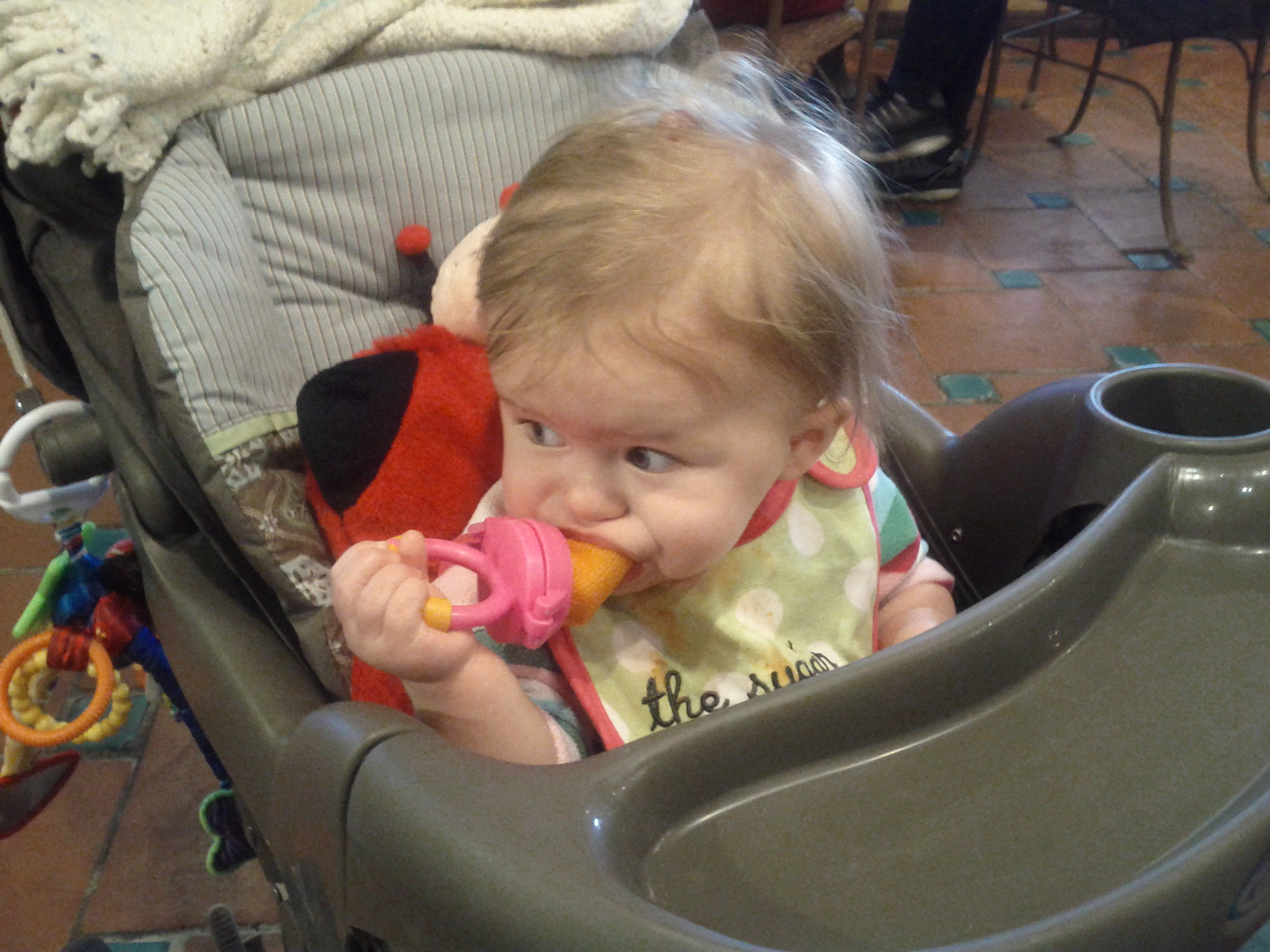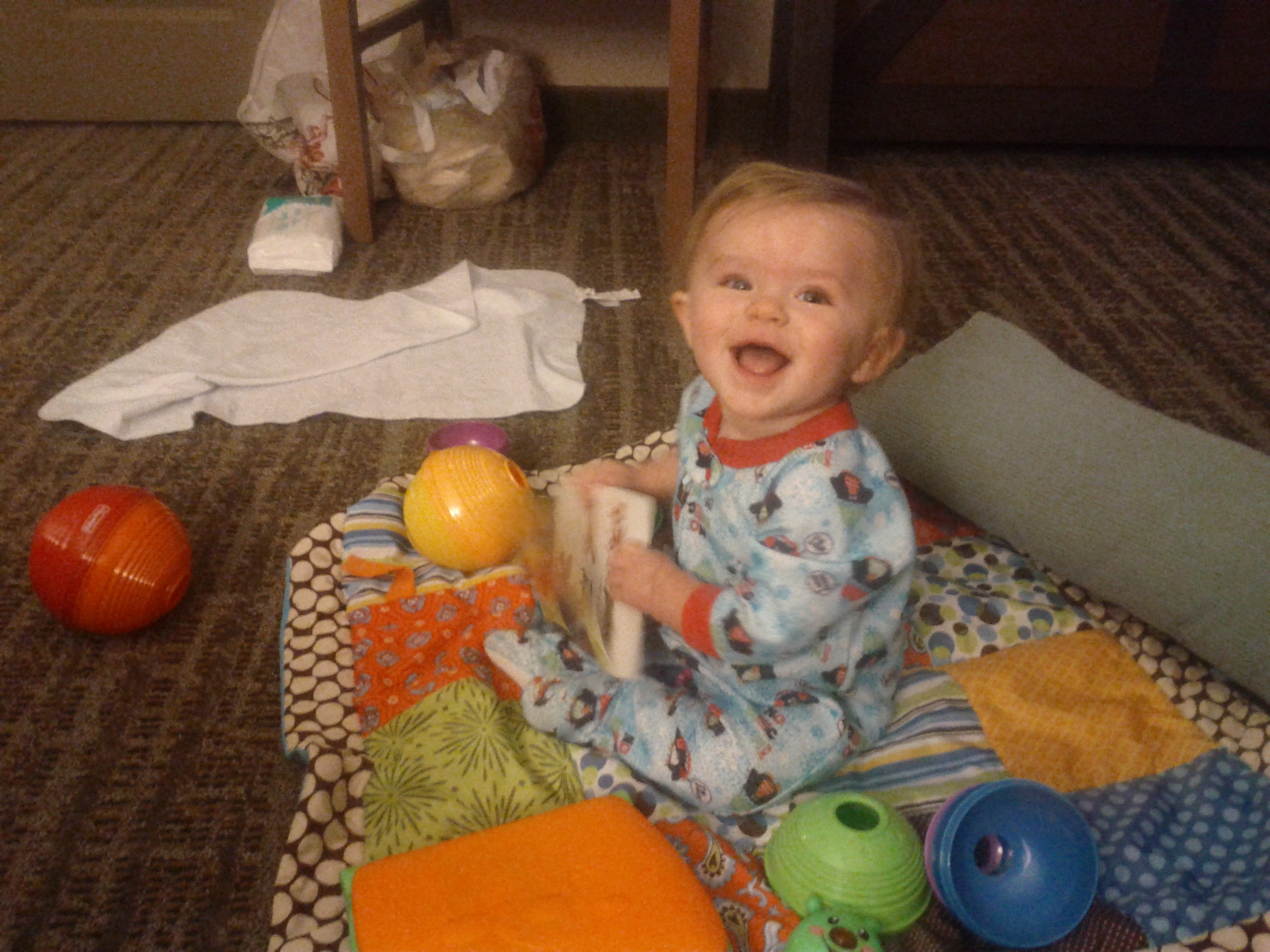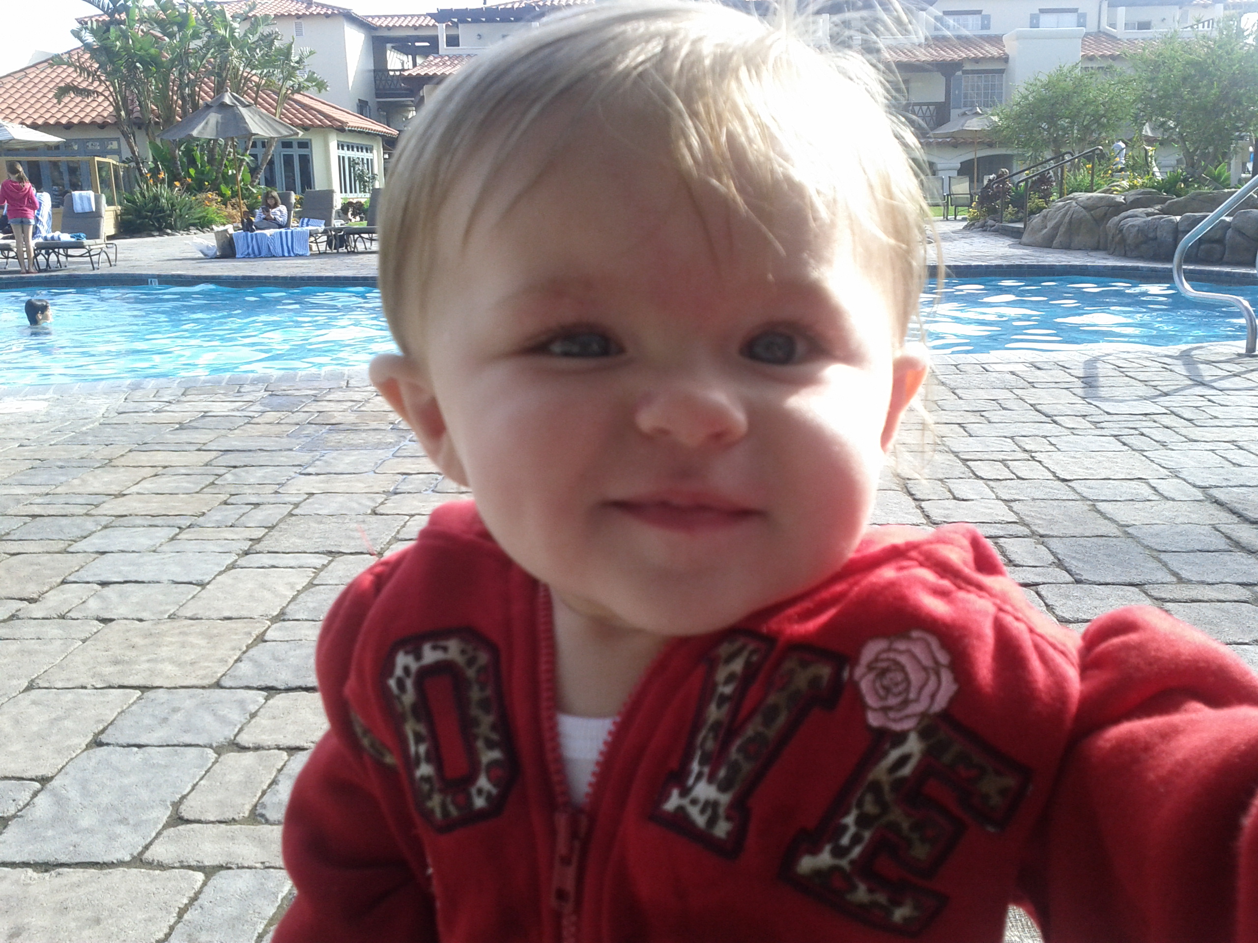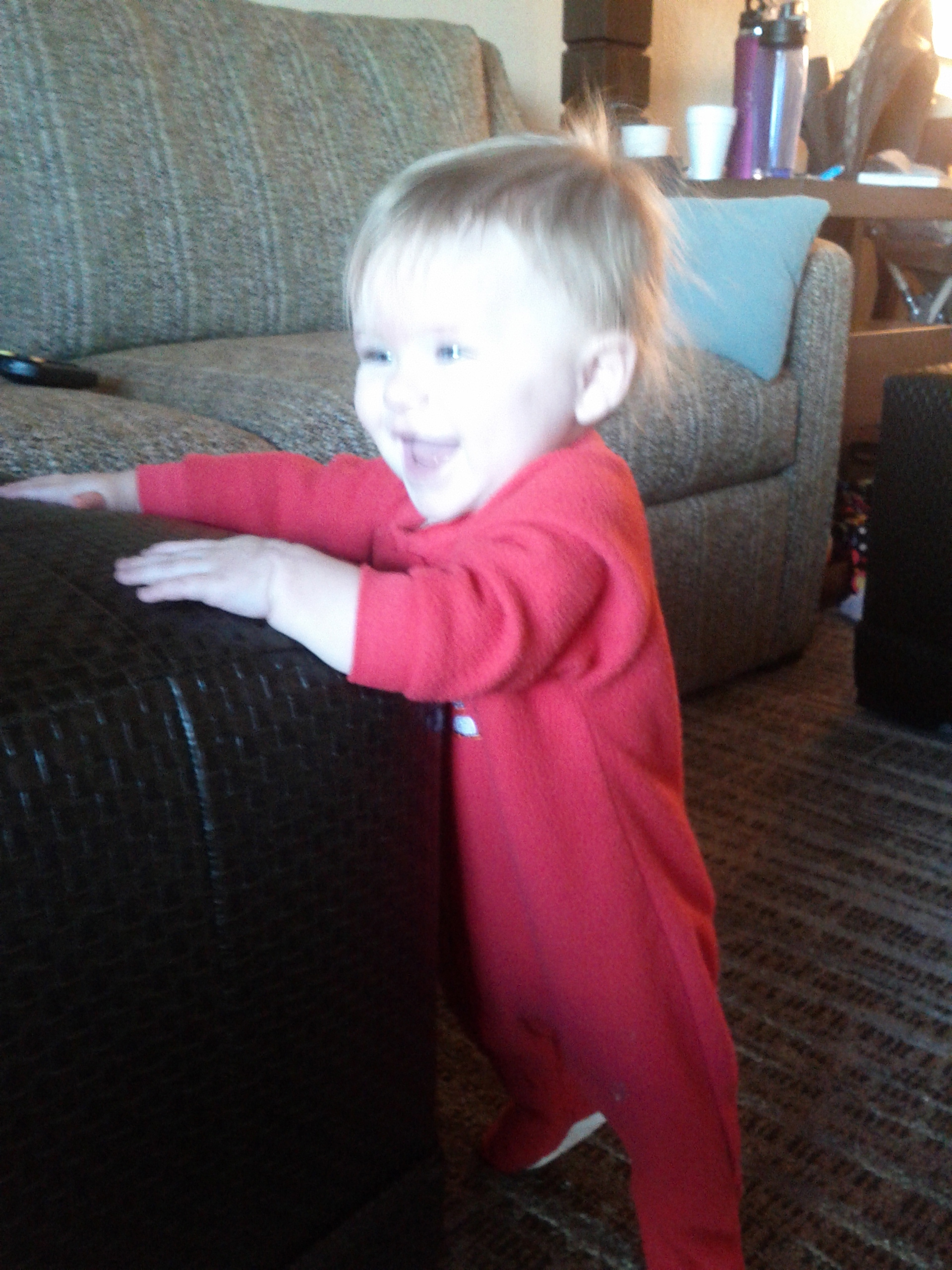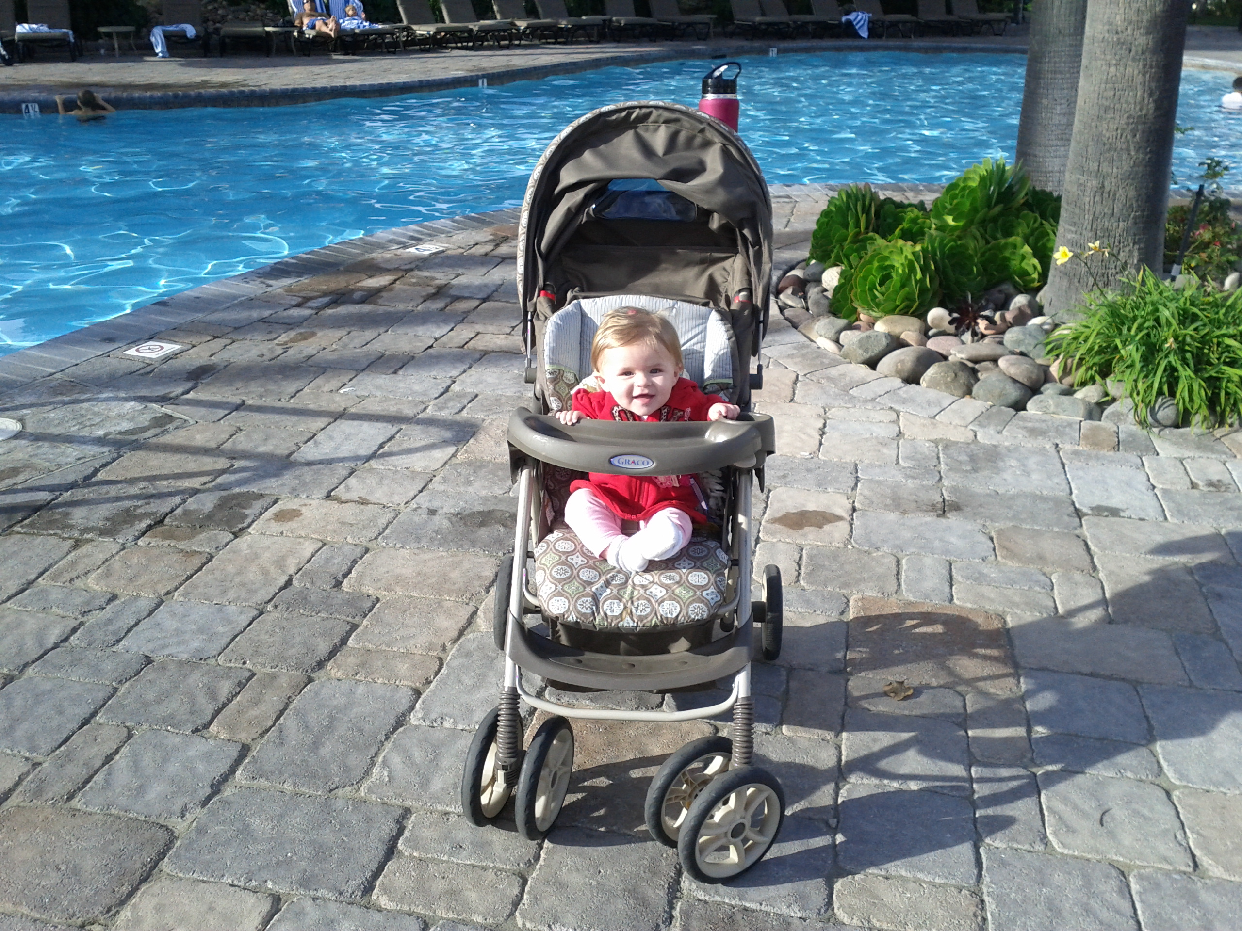 The last few days of our trip were spent walking, sitting by the pool and playing in our room. Kaili is getting really good at pulling herself up with some help and can stand on her own when supported.