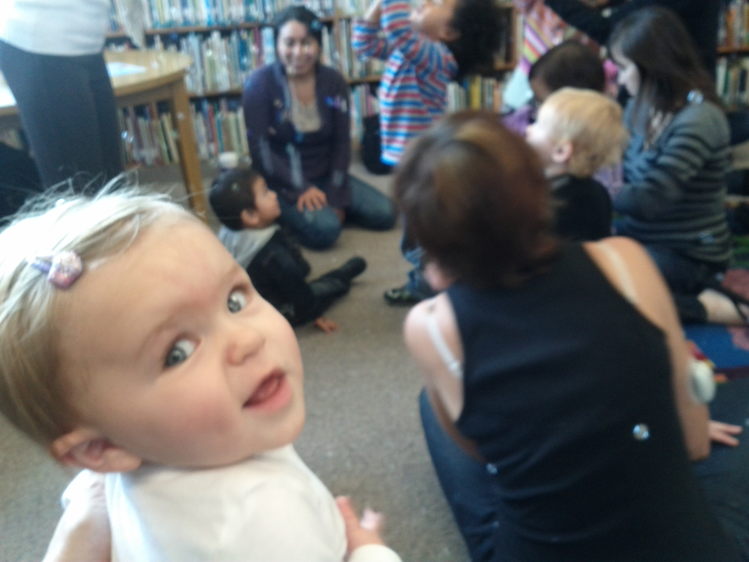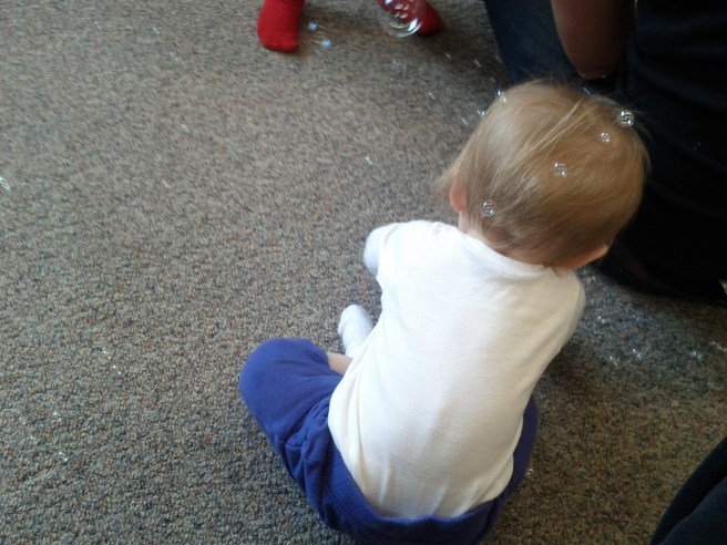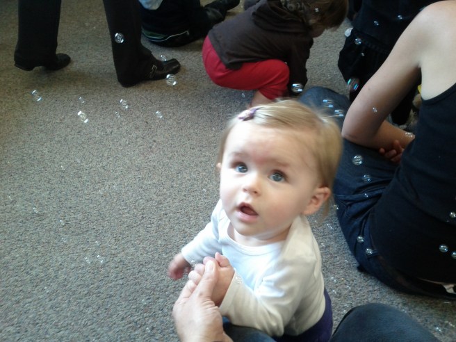 I took Kaili to our local library’s baby sign and story time last week to check it out. I would say she enjoyed herself, the bubbles especially.