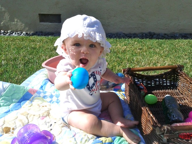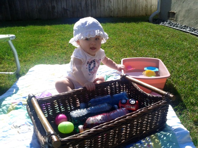 Even though the Groundhog saw his shadow and we have 6 more weeks of winter {BOO} our winter has been pretty mild. So I take these sunny days as opportunities for water play outside. I also took our discovery bottles and egg shakers too. Fun, easy and cheap!