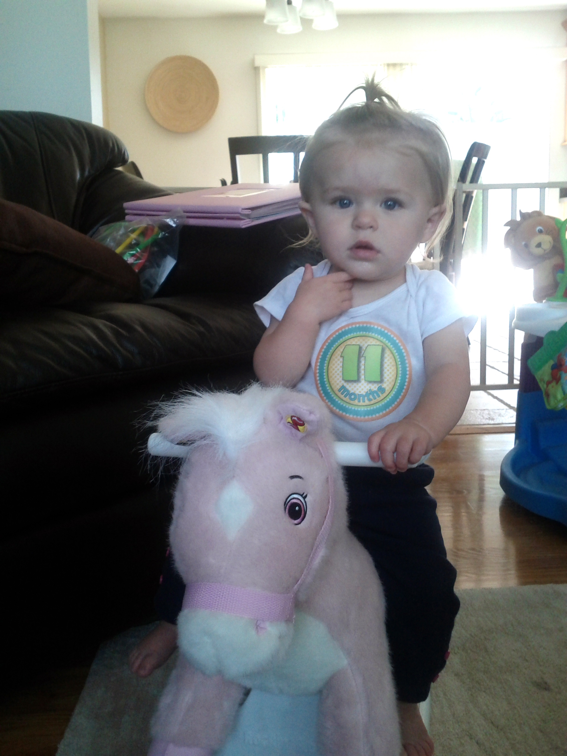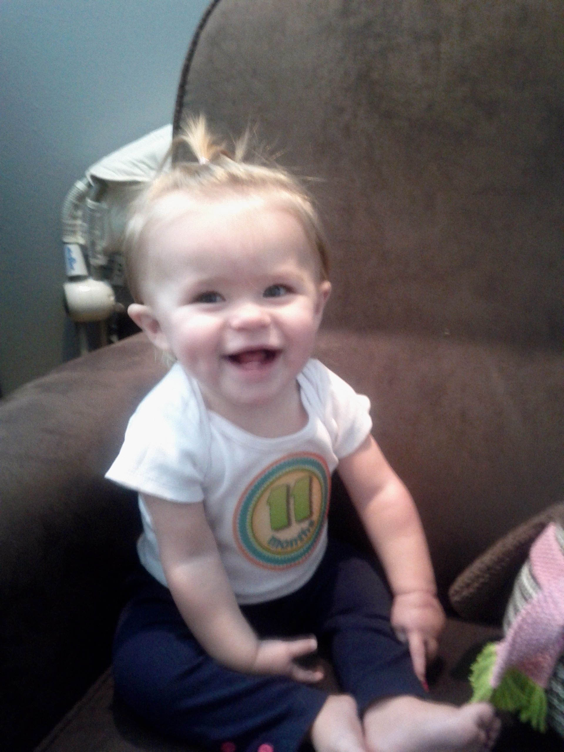 She is such an easy-going, laid back child, man I sure hope this continues through her teen age years. A girl can dream right? She still loves music and lately a bread commercial that airs during the morning news will grab her attention and she will stop what she is doing to watch it. She is also budding into a fine little foodie. There isn’t much she wont eat but there are certain times when she will turn her nose at eggs and avocado. I wonder where she got that from? She just got her two top teeth that makes 4, with a few more on the way.