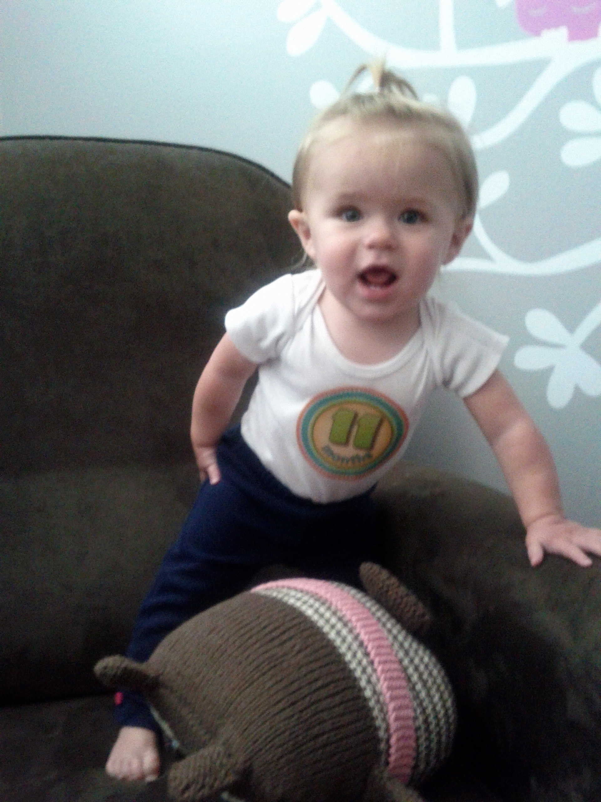 Wow, 11 months old. I keep thinking that each month is my new favorite age but this one truly is the best one so far. Kaili’s personality is really shining through and she is a funny little thing. She thinks the silliest things are hilarious, mama stretching on the ground and mama calling her stinky booty are sure to get her laughing. Wonder where she gets it?