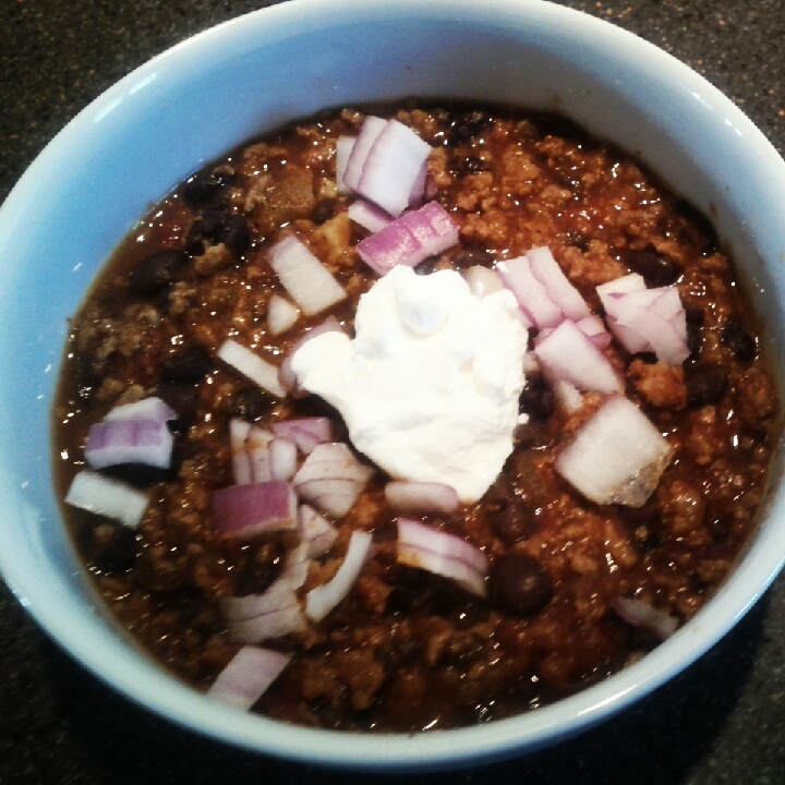 I wanted a recipe without a lot of components and easy prep work. My sous chef was in Ventura and my baby was running out of Tupperware fuel, so I needed something quick and easy. This was a last-minute meal idea so I had to work with what I had on hand. I combined a few different recipes to come up with this final dish. The cinnamon is subtle but it goes so well with the ancho chili powder,this turned out to be a very delicious chili.