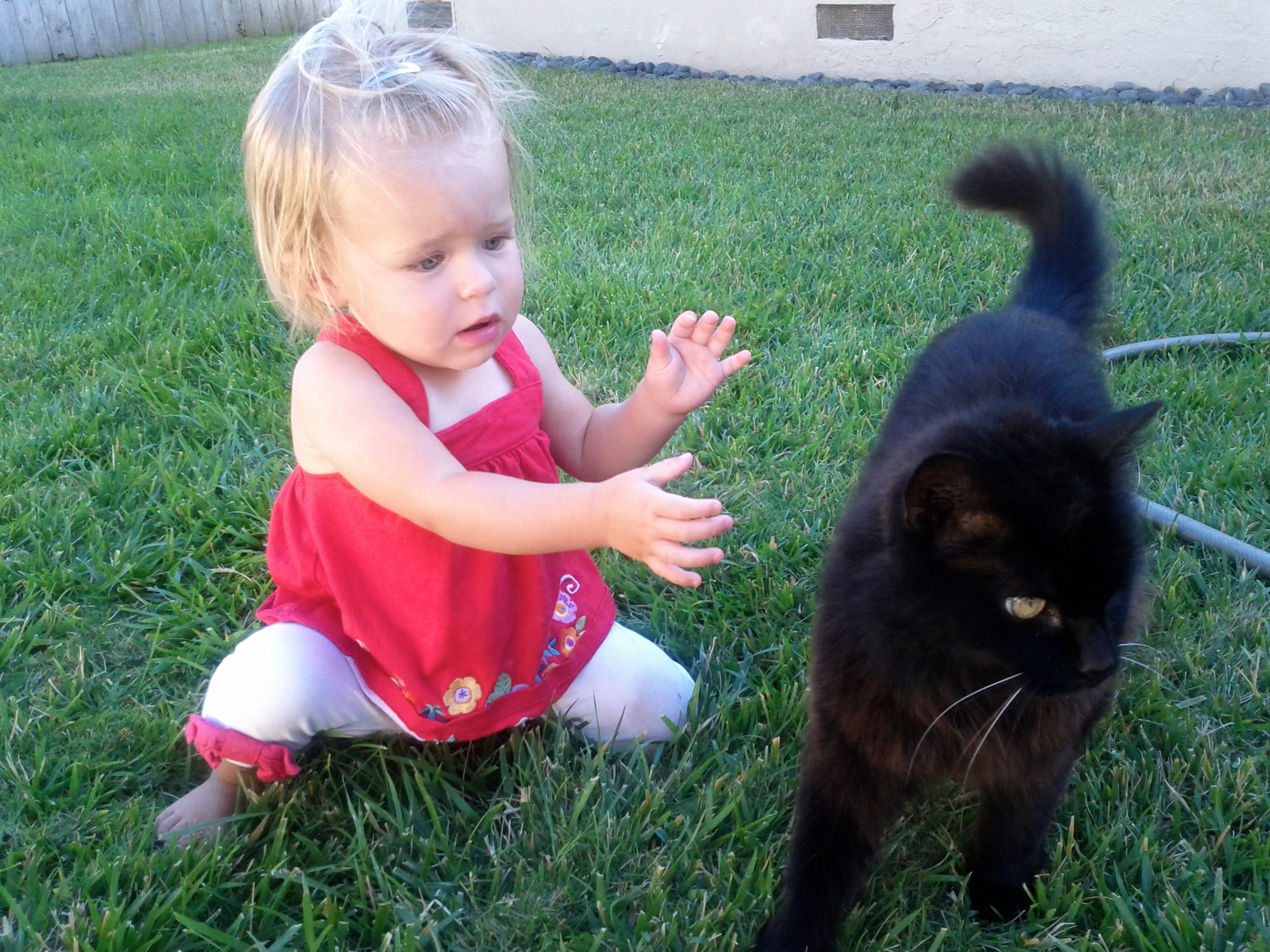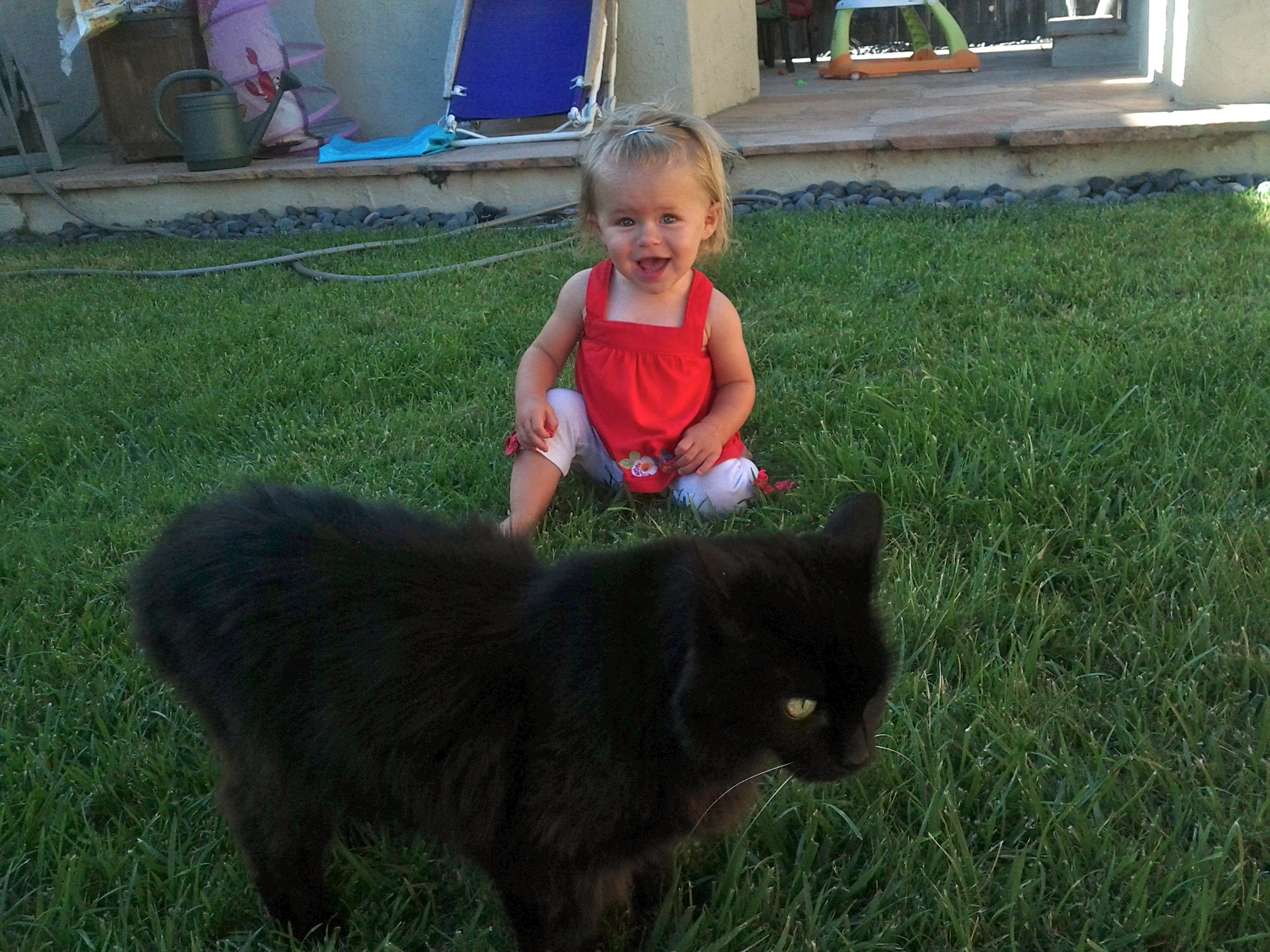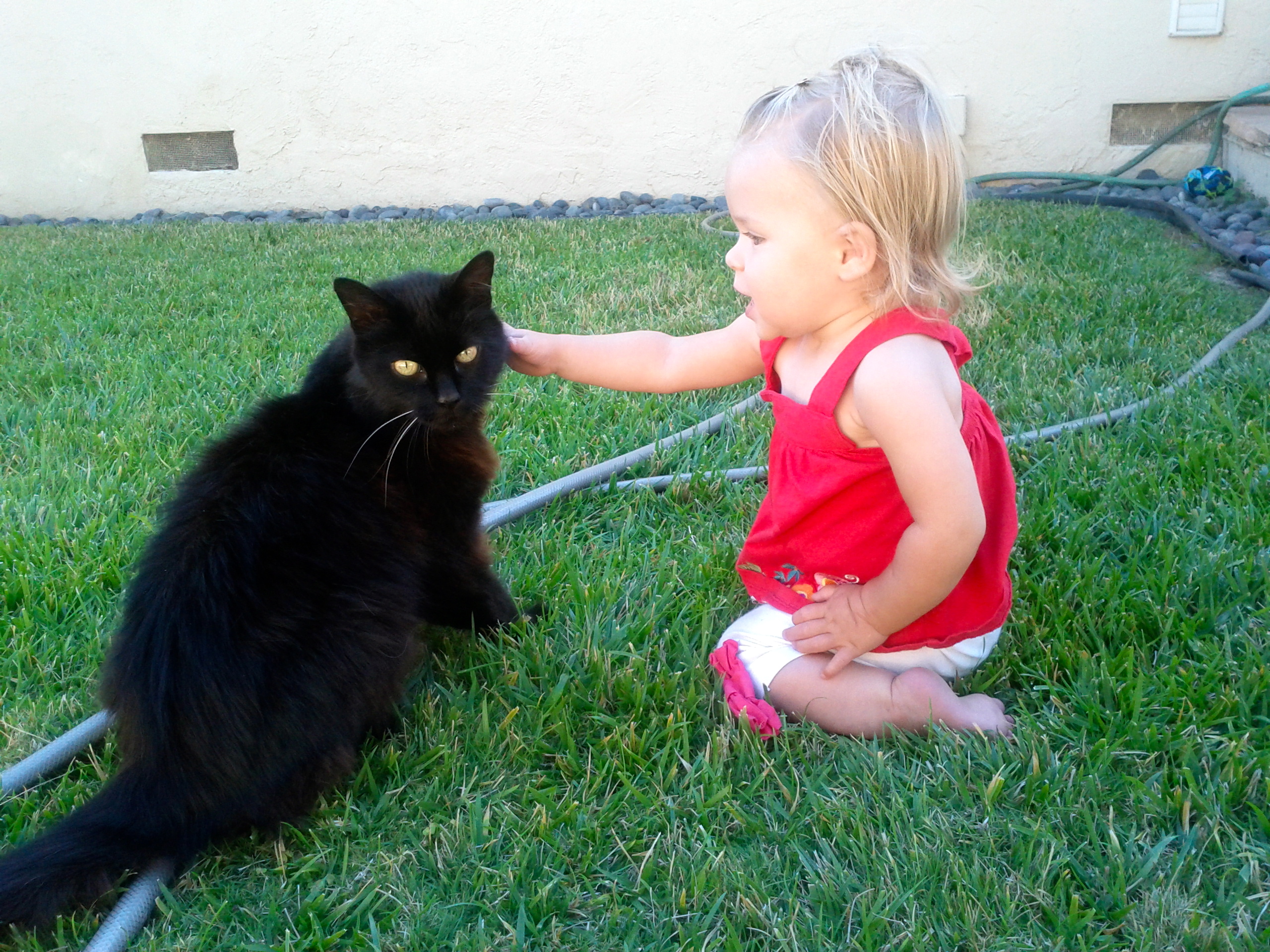 My first baby Senna has been by my side for 15 years now. She has always been a skittish feline and I thought she would make herself scarce once baby K arrived. Turns out I was wrong, she has mellowed out now that Kaili is here. With each day Kaili gets a little braver, now she tries to give her hugs and kisses. I am impressed with the way Senna tolerates the love abuse.