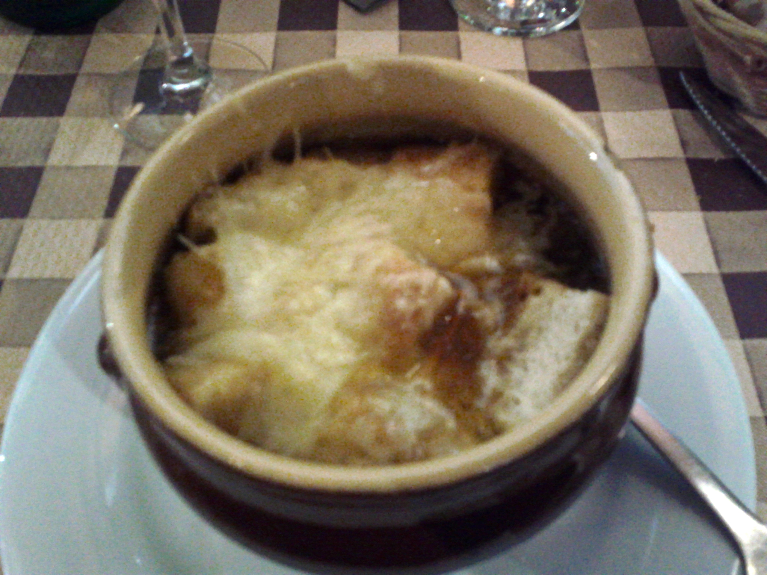 I had the french onion soup, shrimp risotto and ended with creme brûlée. It was all very good. Shane had the french onion soup, beef bourguignon and ended with the apple crisp, he was pleased.