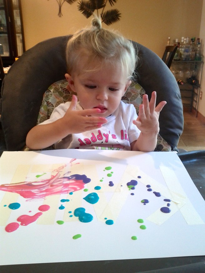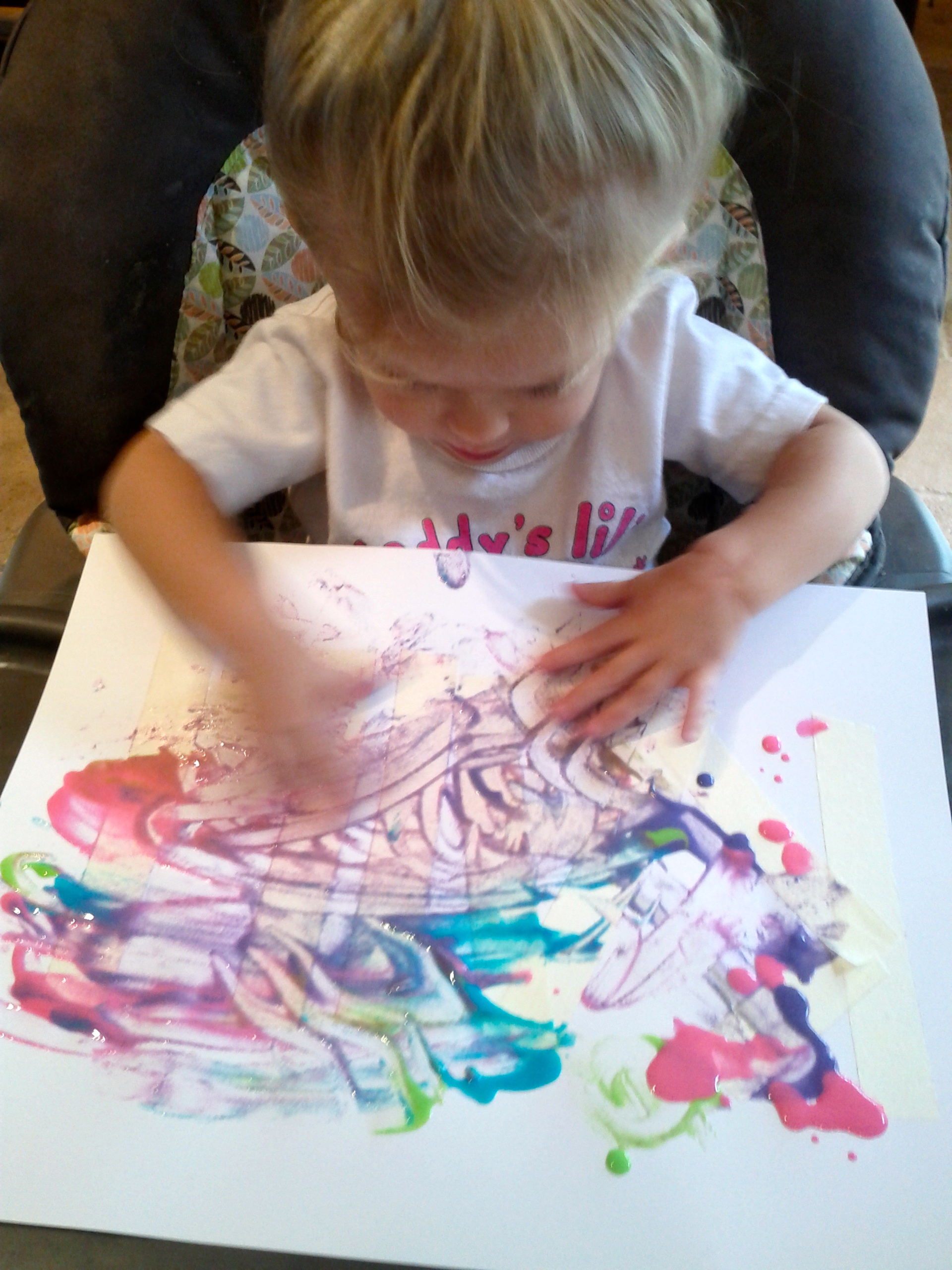 She was SO eager to get started. I dribbled a little paint on the paper and she slowly got into it.