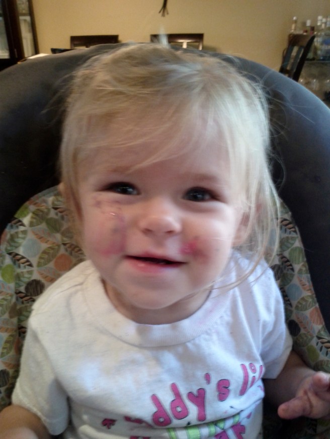 Once she was done, she wiped her hands on her face and in her hair. Sweeet!