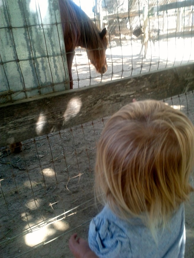 We were out of Ventura before 9:00 A.M this morning. We planned it so Kaili would take a nap in the car while we drove north to Avila beach, she did and it worked out perfectly. Shane and I were in Avila beach last year when we stumbled upon Avila Valley Barn. Kaili was just a tiny thing so I knew I wanted to take her back when she was a little older. We made the barn our first stop. Kaili got a little exercise and loved the animals as I suspected.