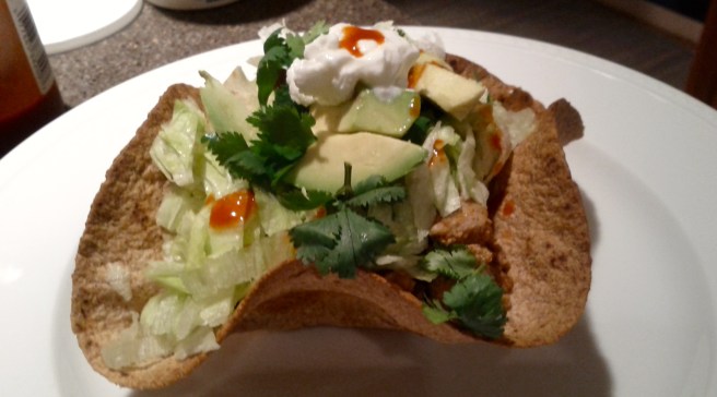 A few years back I planned on getting these but I never did, so now I improvise. It actually turned out to be a blessing because I don’t  have room in my kitchen for much more and I really need a few other things. Like a mandolin, can you believe I don’t own one? Any way, making your own tostada bowls is a cinch, all you need is a muffin tin.
