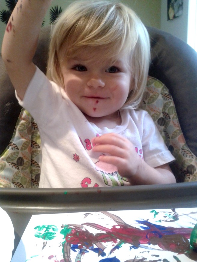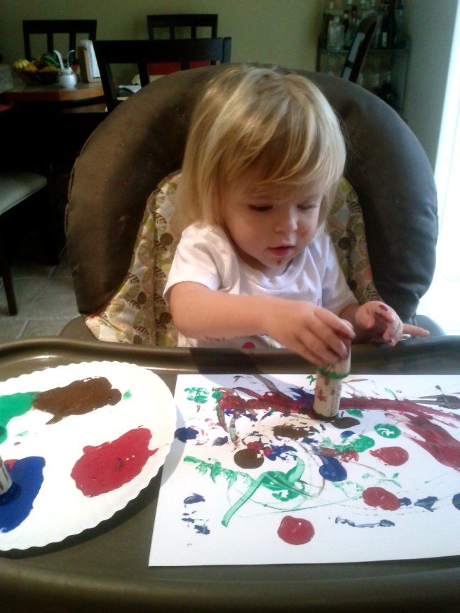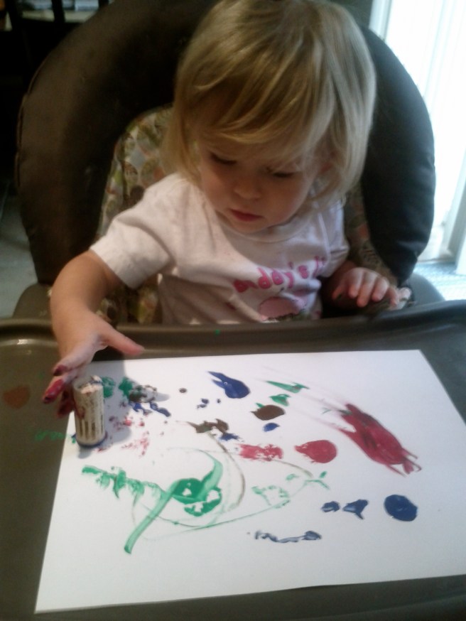 After I had my fun I let Kaili have a little fun too. I mean, sharing is caring. We have an abundance of wine corks, I have no idea where they are coming from. Ahem, anyway I thought it would be a good medium for Kaili to paint with.