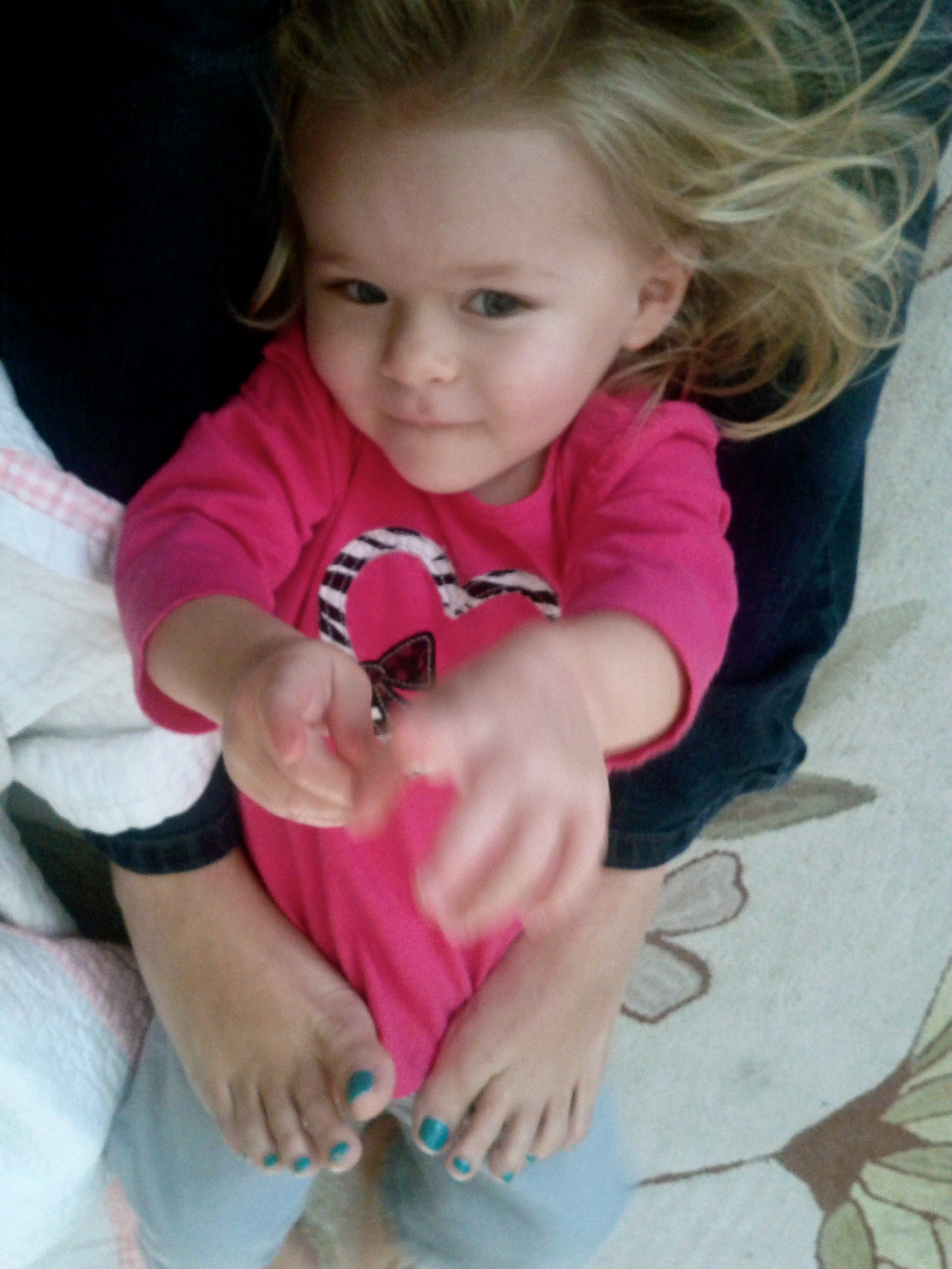 K turns 21 months old today, do you know what that means? I don’t either but I thought I would ask. Last night I gave some milk to the cat and told Kaili to just watch and not to touch. A few seconds later I hear a clink and I ask her if she spilled the milk. Her little feet pitter pattered to me, I asked again. “Kaili did you spill the milk?” She nods her head and says “yes” and then runs back to the cat. So innocent and so darn cute.
