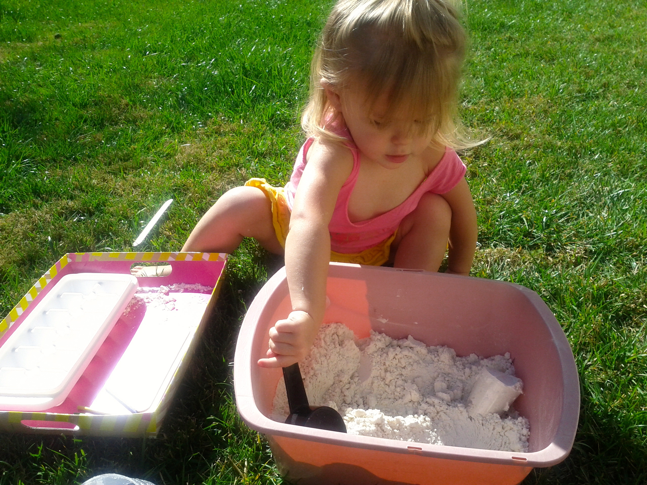 Cloud dough is a a smooth and moldable dough made with only 2 ingredients, flour and baby oil. I made a small batch since it was just for Kaili.