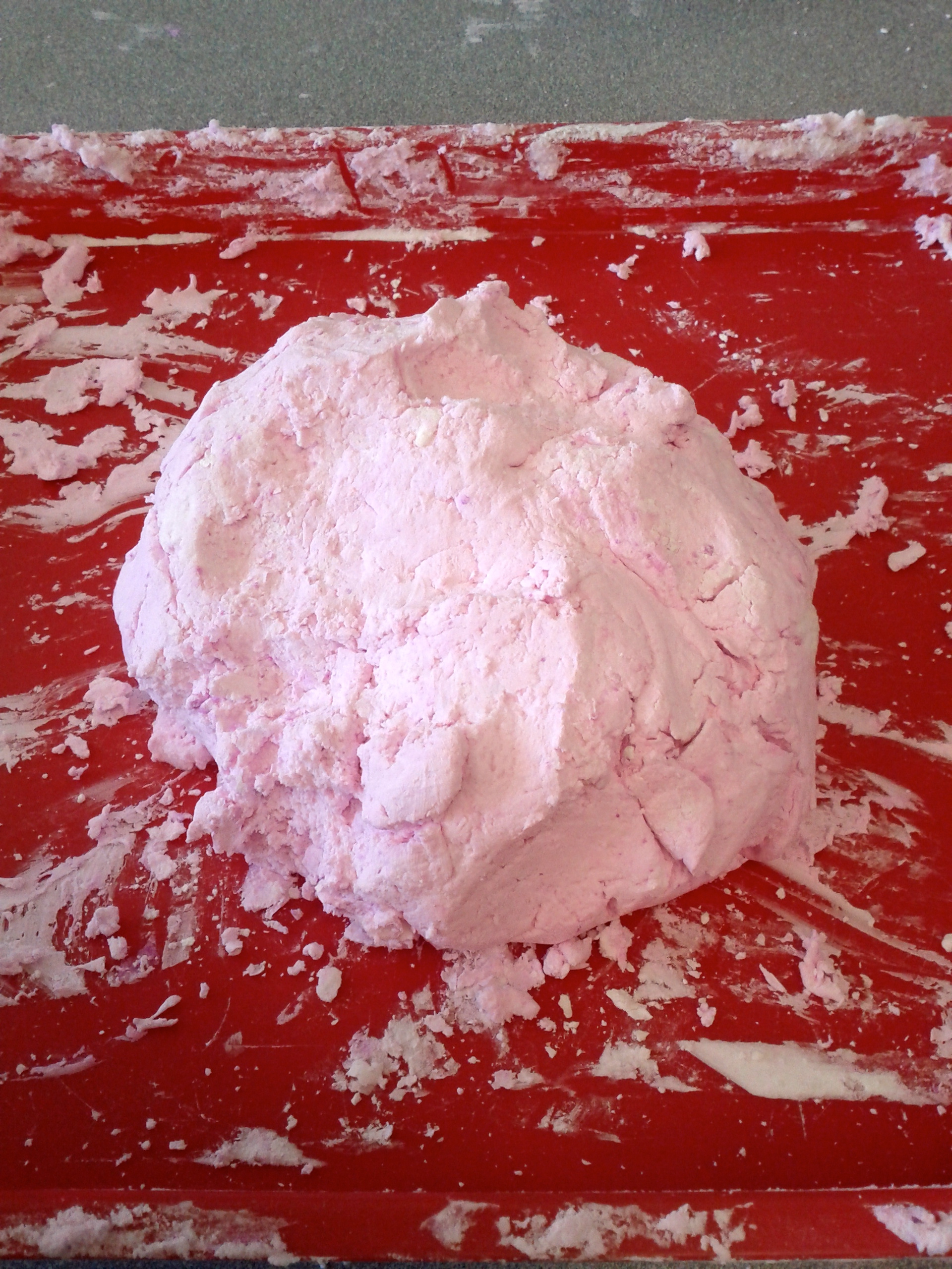 I would definitely make this again BUT I would either A. put all the ingredients in a sensory table outside and let the kids do their own thing with it. Or B. pre make it in a big bowl near a sink and then give the kids the dough to manipulate. I think A. is the better choice. Then you can add in plastic knives, or play dough scissors. ,measuring cups, spoons, ect.