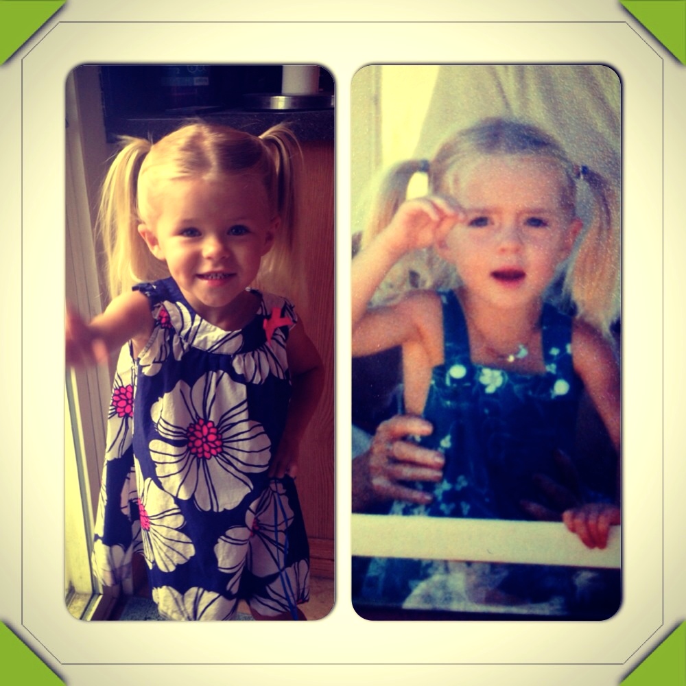 I dug up this old picture of me and thought a side by side comparison would be fun. Here is me and Kaili at 3 years old.