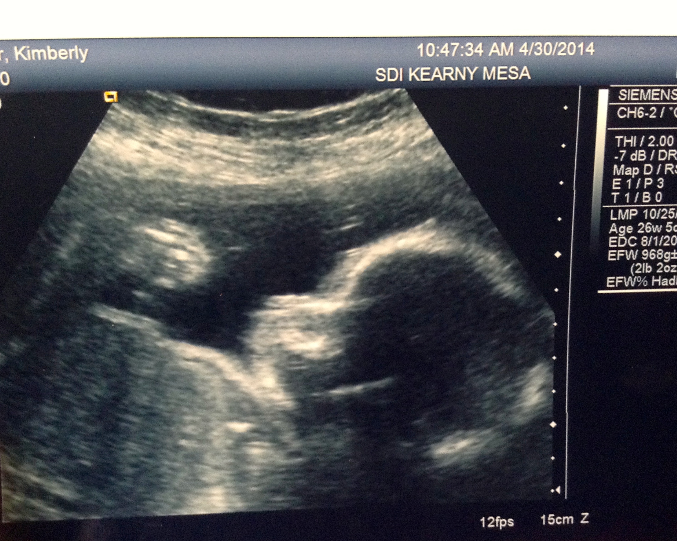Baby A looks good. She is head down and weighing about 2 lbs. 2 0z.