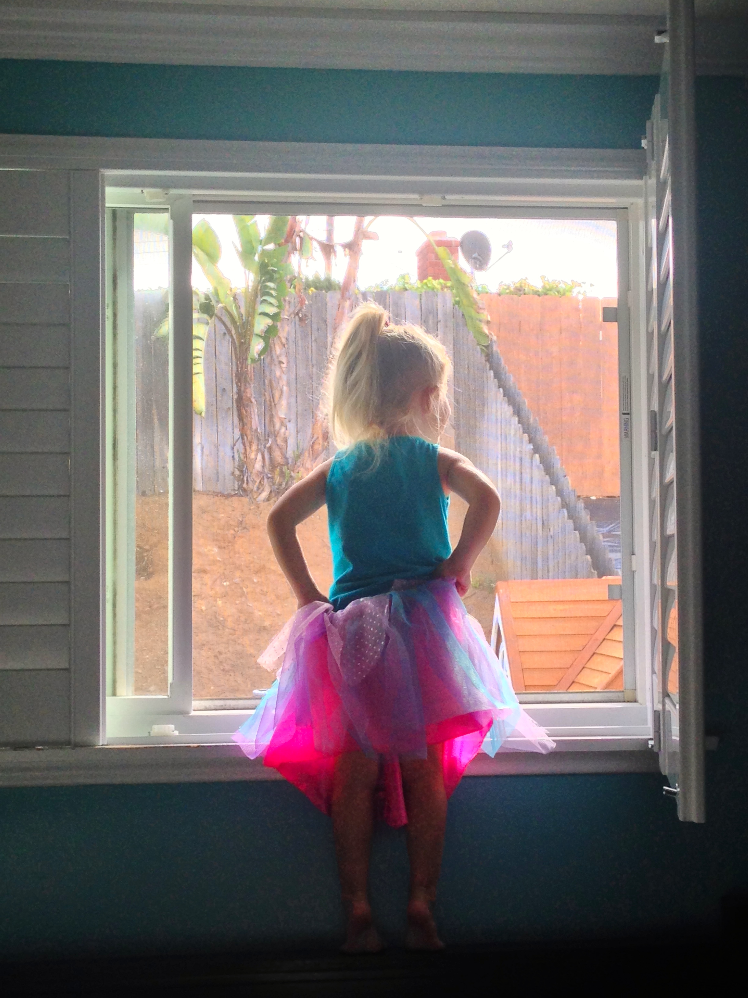 Kaili has been waking before the sun and it’s time to put a stop to it. The husband says I am inconsistent with her in the mornings while he is gone (which is true), while he is consistent with her while he is home. ( which is mostly true) However, he isn’t up with the baby during the night, so I call that a wash. I had to throw the next door neighbors dog under the bus as a consequence. Kaili LOVES our neighbor and the dog and she has recently become really good at helping make the dogs dinner..which can I just say eats better than the guests at an Embassy Suites. Kaili also likes to give the dog treats after he shakes, rattles and rolls for her. But now, unless she can stay in her room until a decent time which is indicated by her light up alarm clock, she can not feed the dog. Harsh, I know, but seriously you guys, 5:00 am is not a decent time to wake up.