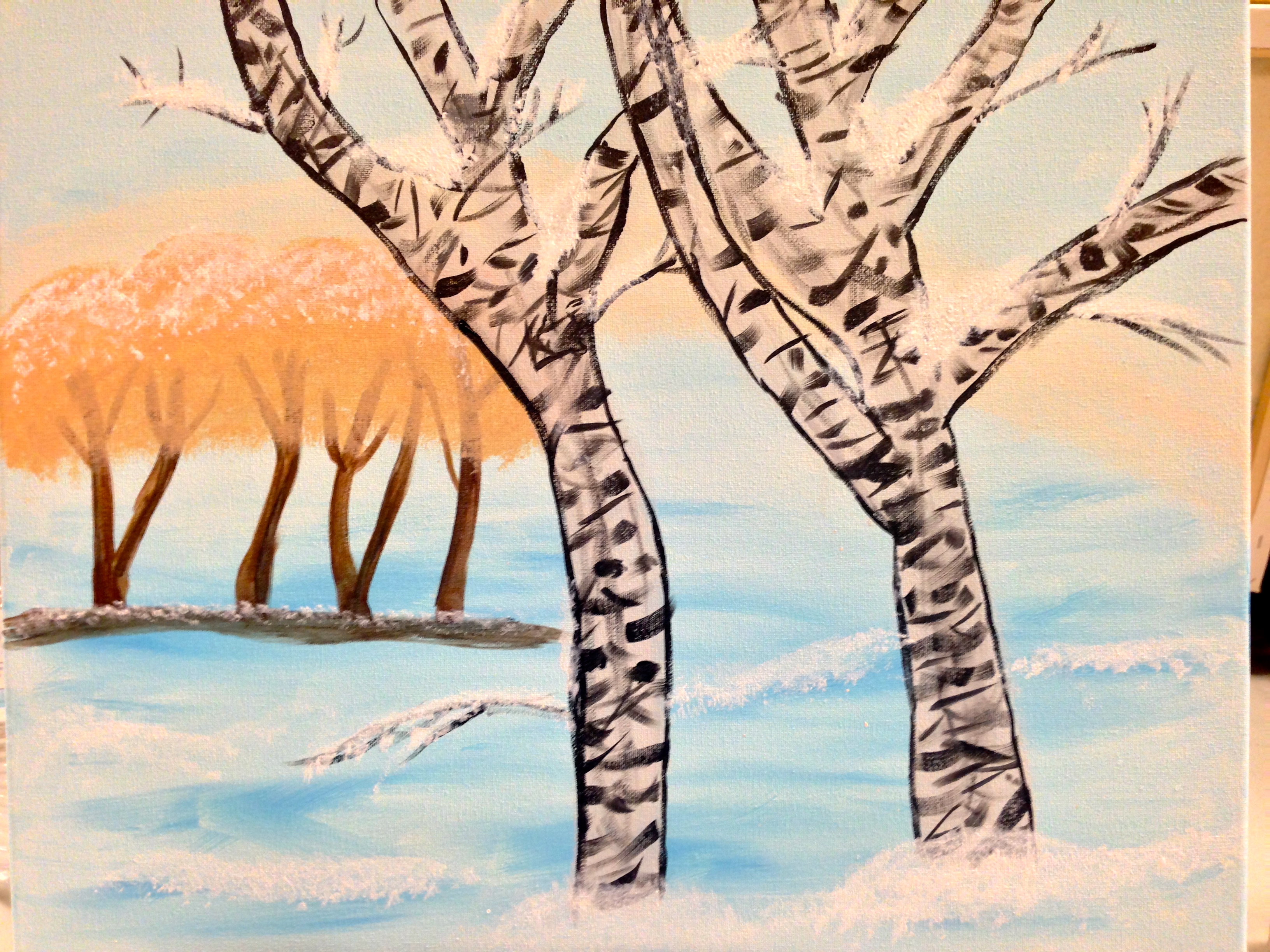 I was a tad terrified when I found out we were going to be painting trees, unless they’re palm trees, it’s not quite my forte. I wasn’t thrilled with my final project but for the first time it wasn’t terrible. I could totally do this on a regular basis, and the wine truly does help. It numbs the pain when you realize you just fucked up your painting with black paint and makes it easier to just brush it off.