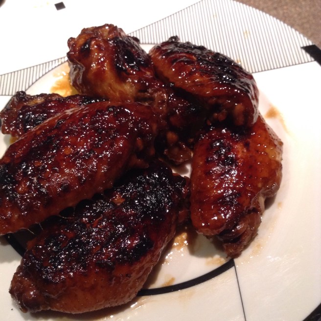 I made the sauce ahead of time and let the wings marinade in it while I fed the kids and did baths. I followed the cooking time from the recipe but the timer went off while I was reading stories so they cooked a little longer than I wanted them to. I broiled the shit out of them because I like the skin to get a little crispy. End result is I will make these again, finger licken’!
