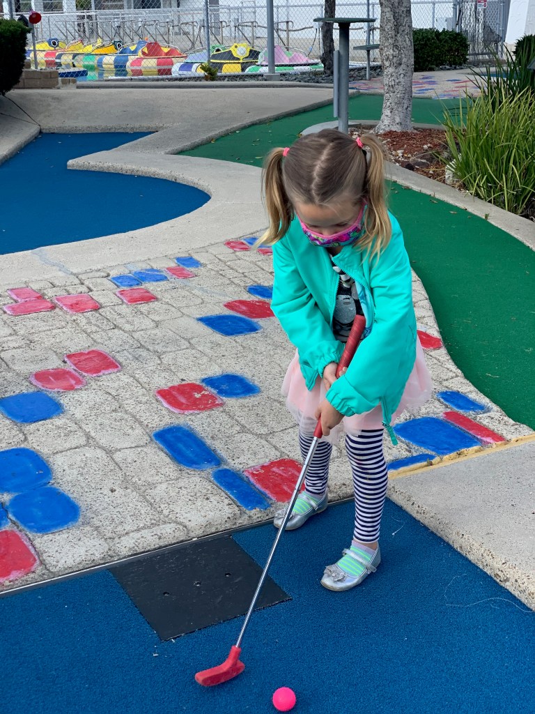 We also made the mistake of taking them to mini golf. Kaili was complaining before we even got out of the car. ” I don’t want to golf.” Then they saw the go carts and asked to do that. They complained about the weather, about being thirsty and about who went first and so on. Fun suckers, that is what they were that day.