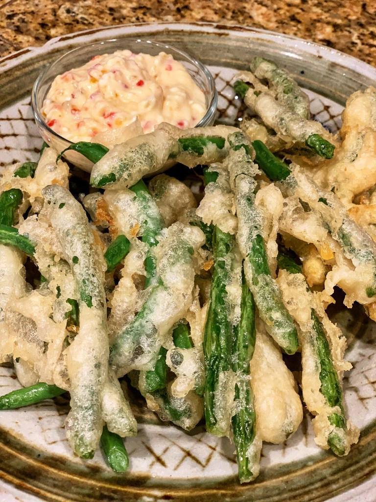 It’s been awhile since we have eaten something that induces inappropriate public food moaning. You know the food that you keep thinking about days after the fact? It took approximately three of those days until I decided to make it myself. The genius behind paring tempura green beans with pepper jelly cream cheese has gone and stolen our hearts.