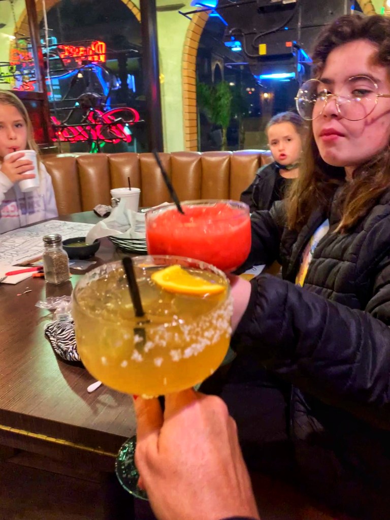 We spent my twos-day and national margarita day at our local Mexican place. Good thing I am getting old because getting there at the early bird time saved us a looong wait.