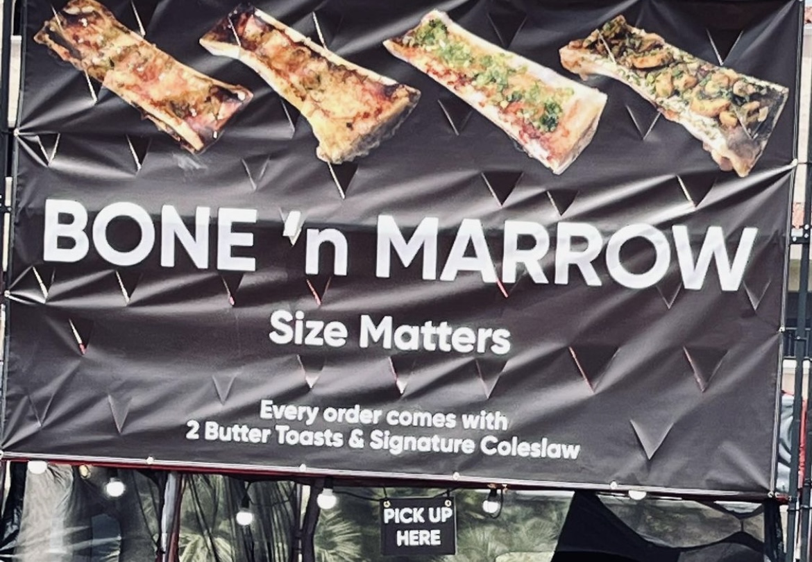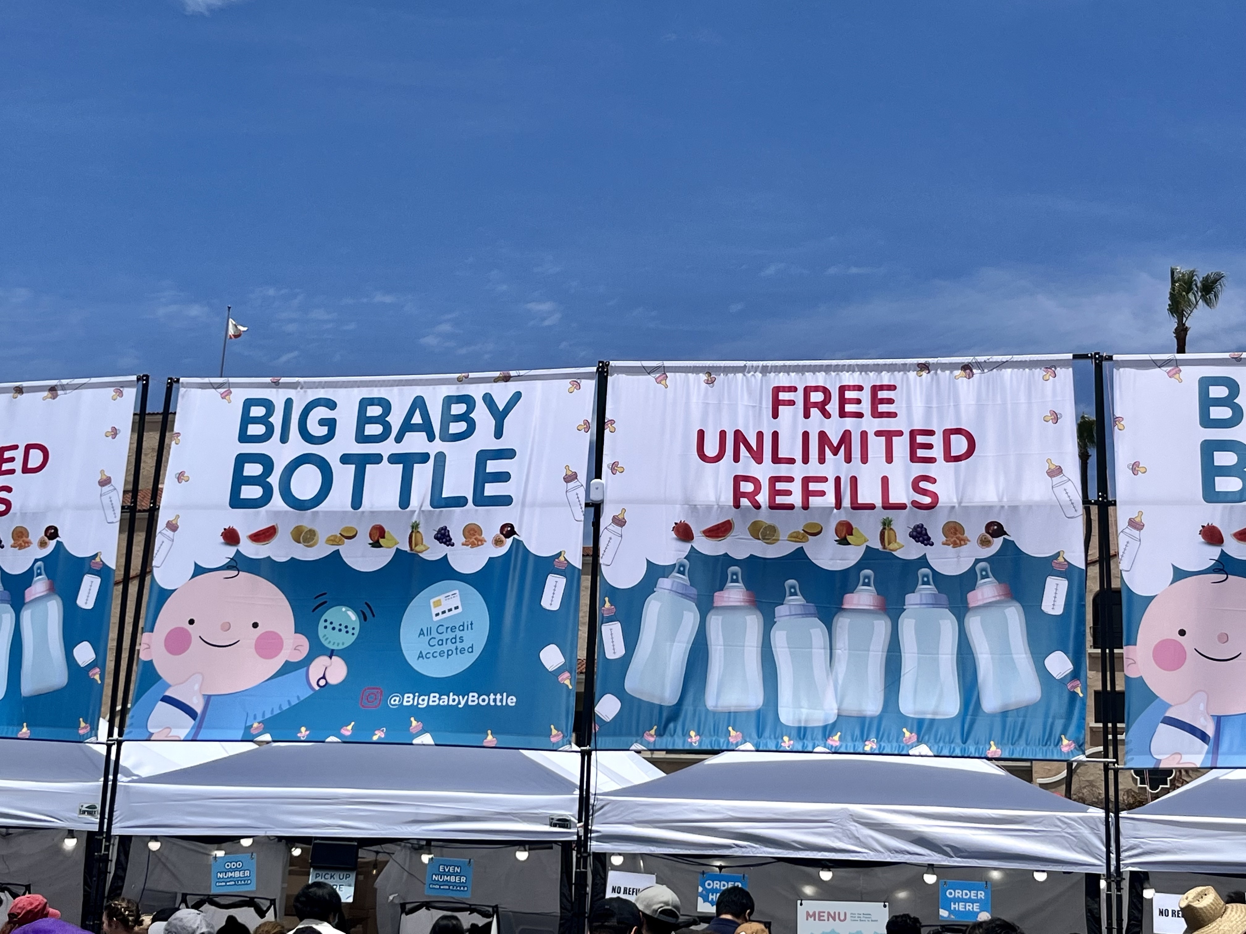 We didn’t even know that FoodieLand was a thing until it came across our Instagram feed. Obviously we had to check it out. It was held at the Del Mar fairgrounds on a beautiful weekend. We got there when it opened, thankfully, because people poured in and in and in. There were over 150 vendors of food and drink, there were sporadicly placed underwhelming bars and two live stages. The entrance dropped us off in the paddock where benches were set up on the grass facing a stage. However, since it was quite warm, everyone had already grabbed the very few surrounding tables in the shade, smart.