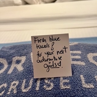 We sat and people watched. Sang along, more people watching, made friends and then found our room to unpack and shower. We had a nice dinner in one of the two main dining rooms followed by espresso martinis and music.