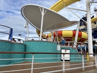Alas, we were making our way onboard. Our rooms weren’t ready so we headed straight to the pool deck we went.