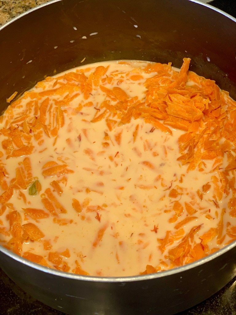 Next was the carrot pudding, although the final product tasted amazing, the end result did not turn out how the cookbook promised. And no, it was not user error. Somehow grated carrot boiled in saffron, cardamom and milk was supposed to turn into a velvety pudding consistency. This did not happen and I even let it simmer for a lot longer than suggested. This picture is what I had after the recommended 30 minutes.