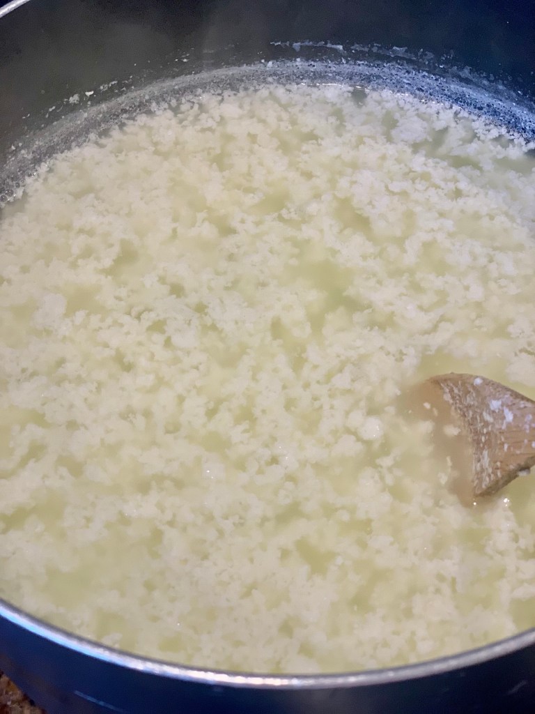 First up, make the cheese. Paneer, a farmer’s cheese made with milk, lemon and salt. That’s it, that’s the recipe.