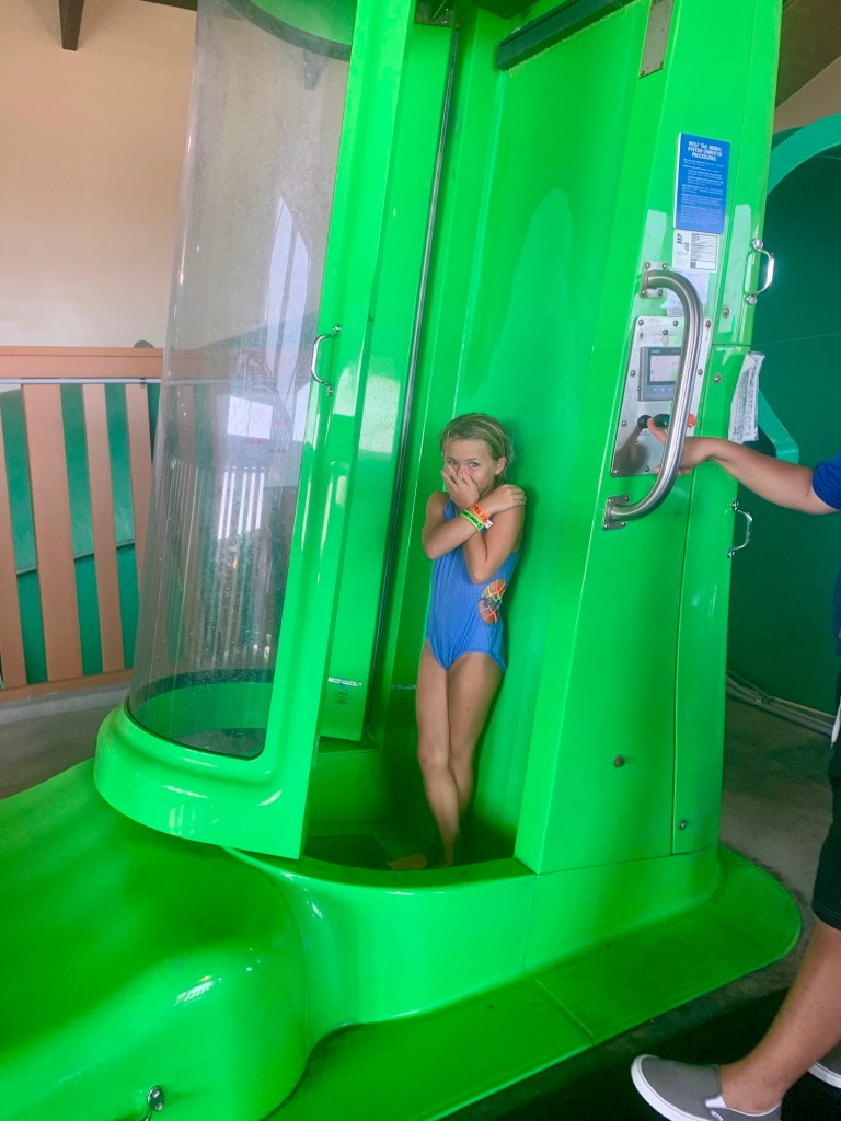 Hours and hours of rides and I was beat. Averi and I did one last ride together and the slide shot us down the chute backward, we flipped and that was about it for me.