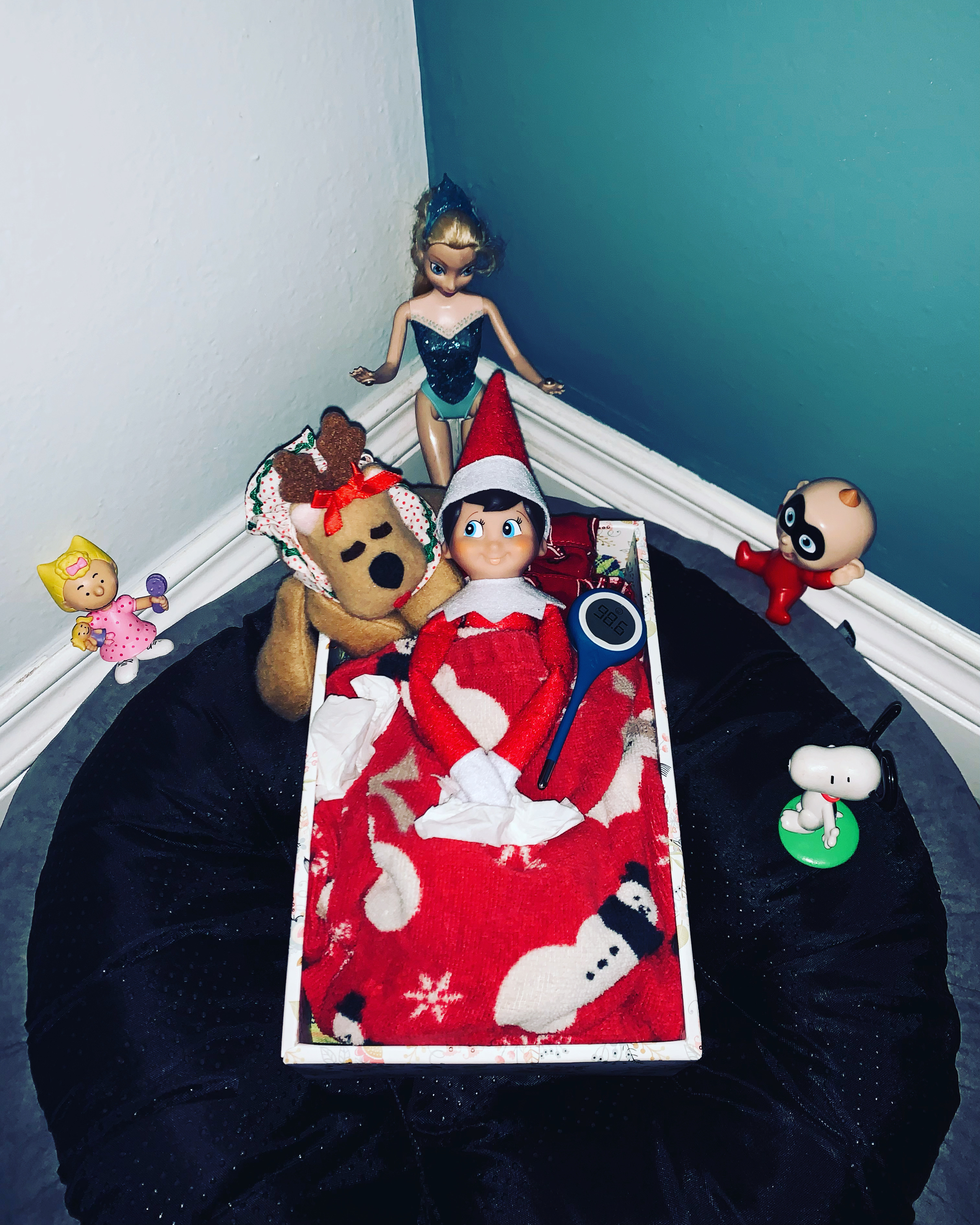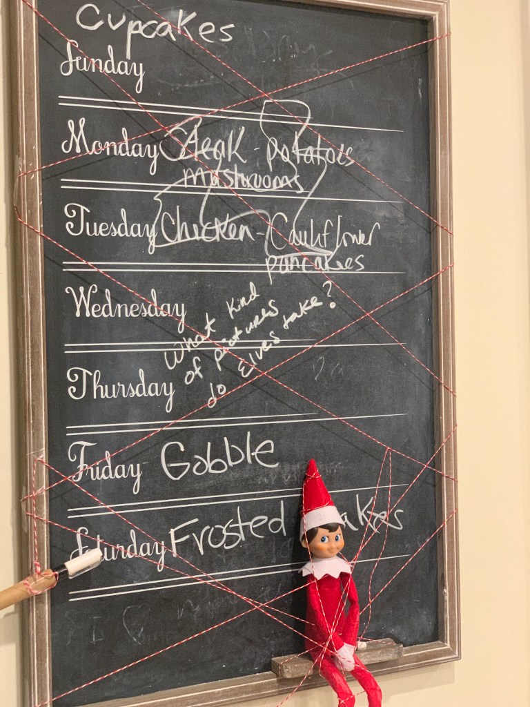 Did you remember…. the 1st night of December (insert Earth Wind and Fire tune) lucky for us, our elf did remember to pay us a visit. Santa sent his elf Cupcake Dustybum to ours on the first night of December. He left a wrapped present for the girls.