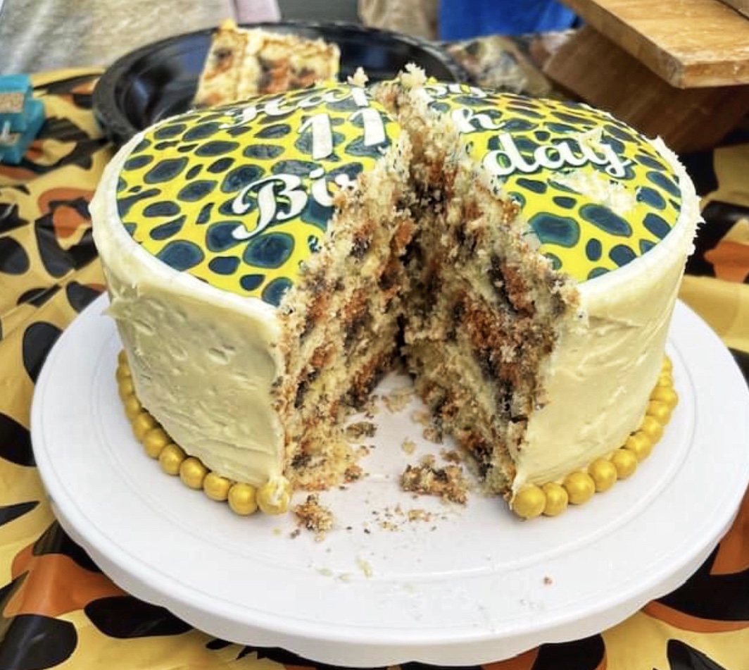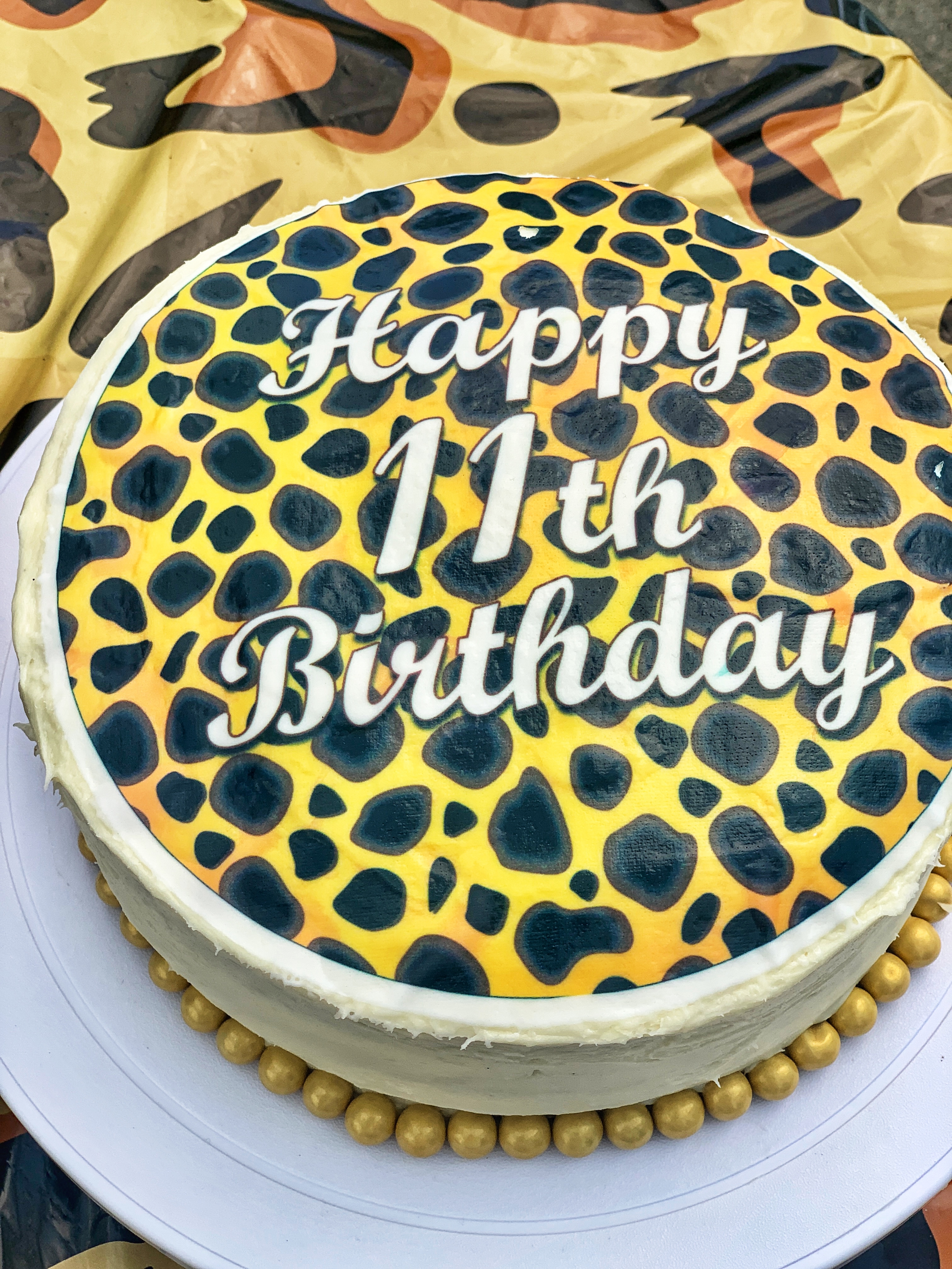 We went through a handful of party themes for Kaili’s 11th party. First it was this, then it was that, and finally we landed on a Cheetah theme. Which was exciting for me because for some sick reason I like to attempt new things in the kitchen when the audience is bigger than the our household. I wanted to see if I could make a cake with the cheetah print inside, reach for the stars you guys. So that put me in crunch time to order a cake topper because even though I like to bite off more than I can chew, I don’t want like to choke; so creating cheetah prints on the frosting was out of my comfort zone. I ordered an edible topper and had it rushed delivery so I wouldn’t be panicking the day before the party. I got the UPS updates all day Wednesday telling me that it was out for delivery and would be here by 5:00, sweet. Well, 5:00 came and went and then I got a message saying that it was delivered to our front door, but it wasn’t, so then panicking ensued. I went to the neighbors like a crazy person and with no avail, decided to wait until morning. Maybe the good samaritan that had my kids birthday cake topper would drop it off. Meanwhile I racked my brain of a back up plan and the thought of having to roll out fondant to decorate the cake was too much for my mind to take. So after the kids were at school, I set out on foot to check everyones front porches for the white envelope I know so well from past birthdays. You guys, I found it, it was on our neighbors porch, hidden behind plants. But….I had already rung their doorbell and no one answered. On top of everything it was a camera doorbell and apparently I am a chicken shit, I went home empty handed. Shawna told me to man up, take the envelope and stop stressing. So I went back, grabbed the envelope and cowardly mouthed to the camera that it was mine and waved like an idiot and went home with my heart pounding like I just went through TSA with cocaine in my panties. I mean, I hadn’t even baked anything yet, sigh.