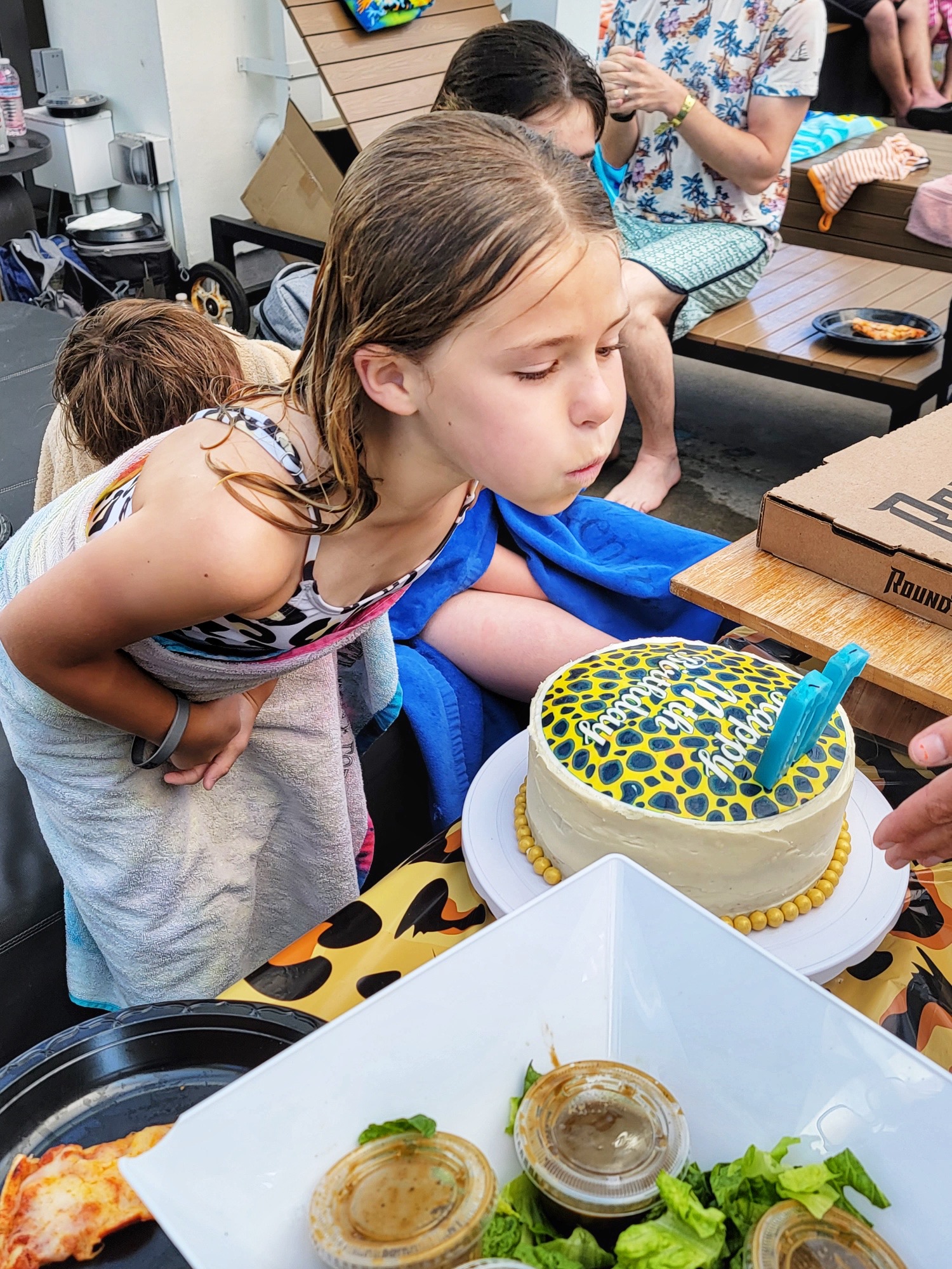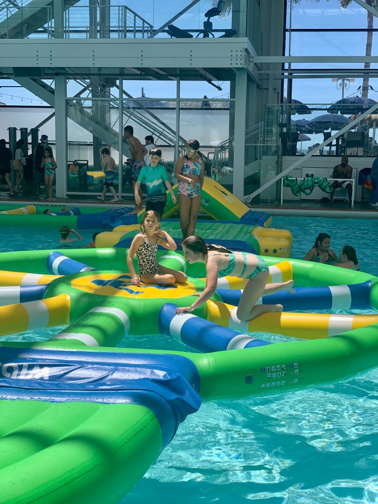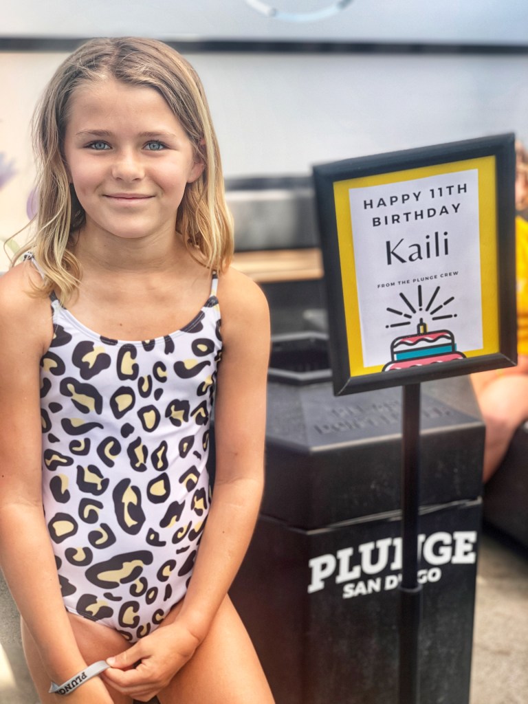 Kaili wanted her party at the Plunge in Mission Beach. The Plunge is a huge indoor pool with an inflatable obstacle course. We had never been before so it was a blind mission. I was able to order all of the food before hand, they were super easy to work with and would definitely do it again. We had a nice area by the pool that had a table, a couple of benches and loungers.