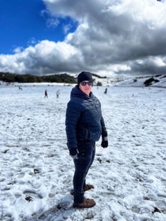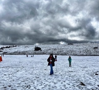 Heat veg oil in heavy large skillet over med-high heat. Add 1/2 cup of green onions, ginger, garlic and chili-garlic sauce. Saute just until onions soften, about 45 seconds. Stir in brown sugar, soy sauce , vinegar and lemon juice. Bring to simmer stirring constantly. Mix in eggplant puree and cook until heated through, about 2 minutes. Remove from heat, stir in tomatoes, 3/4 cup green onions and sesame oil. Cool to room temp. Season with salt and pepper to taste. Transfer to a medium bowl. (Can be prepared 1 day ahead, but bring to room temp before serving.) Garnish with 1 tbs of green onion and cilantro. Serve with toasted pita chips.