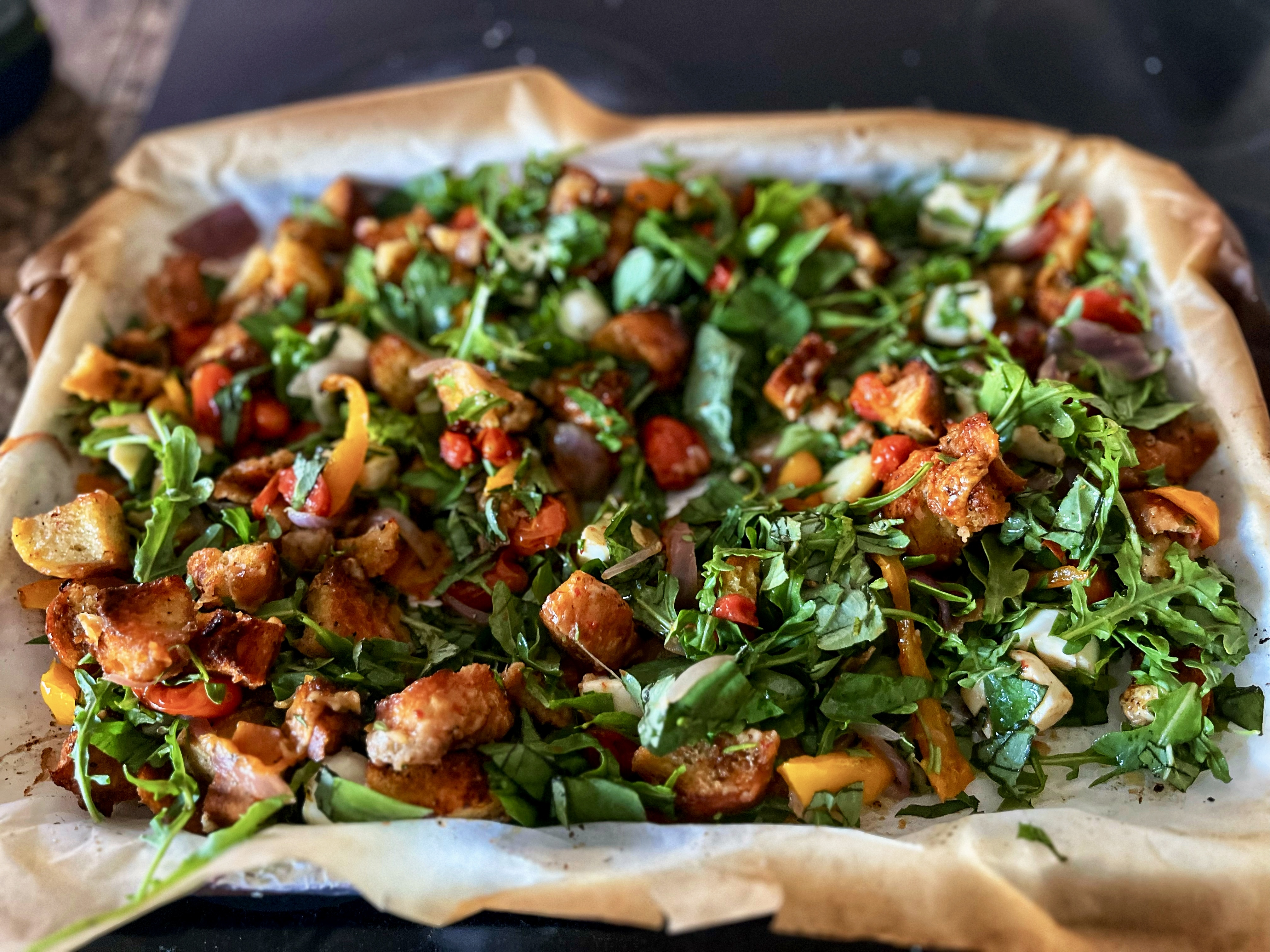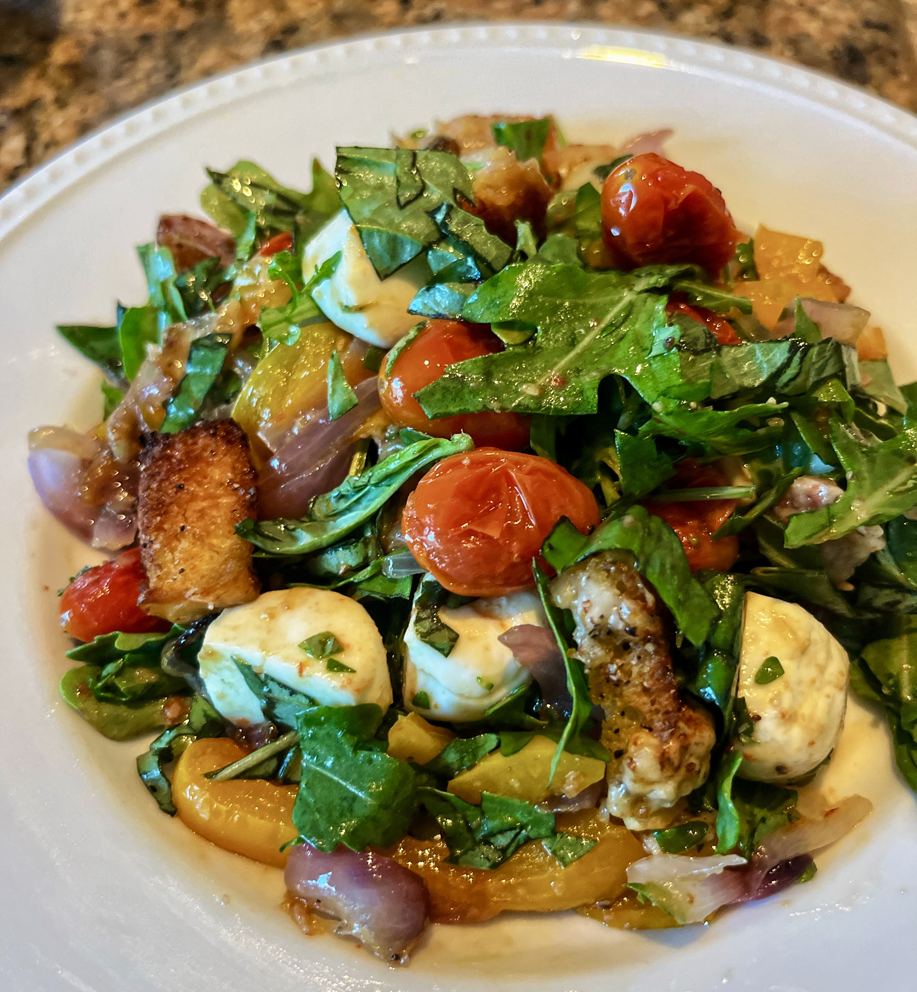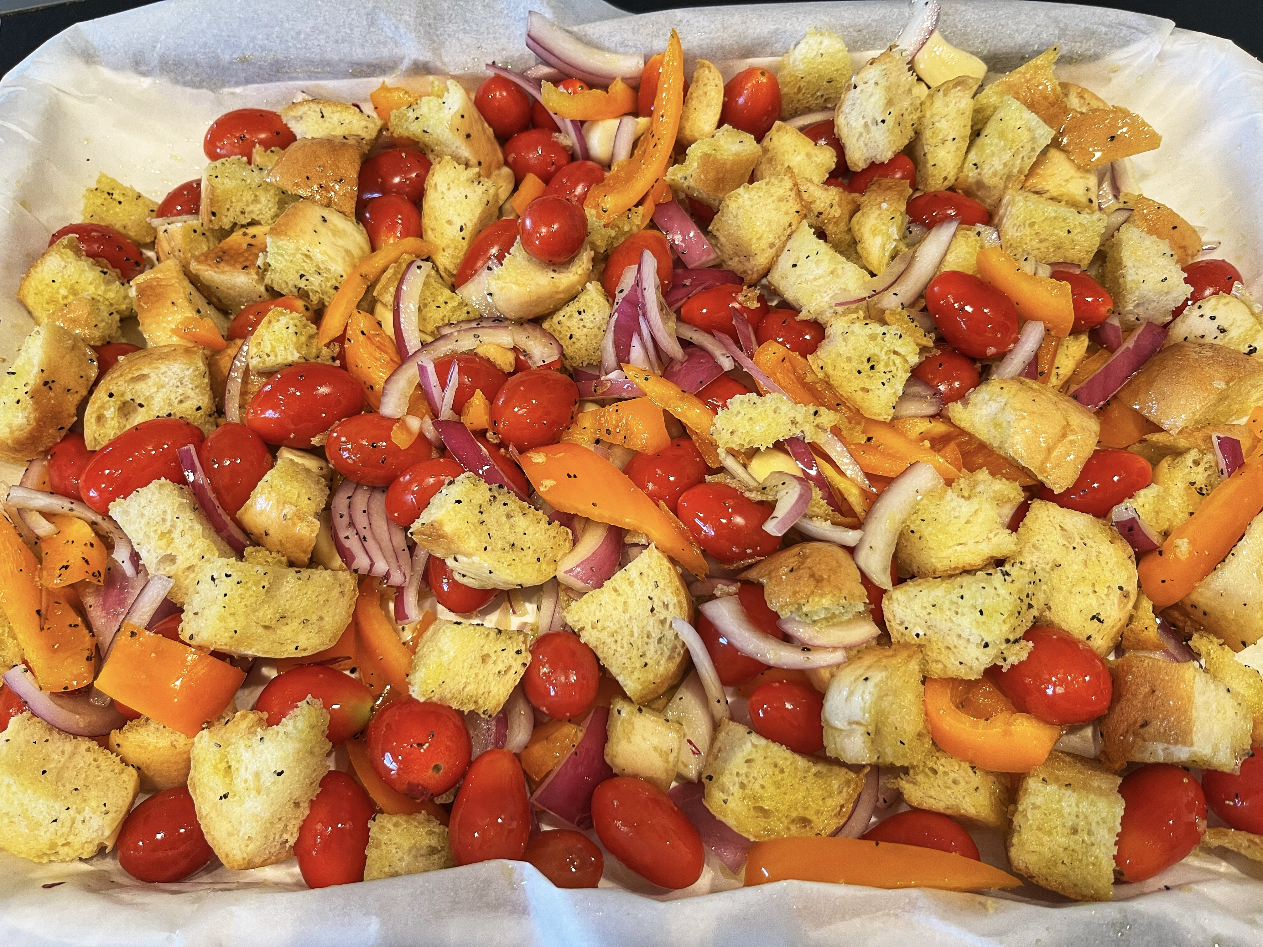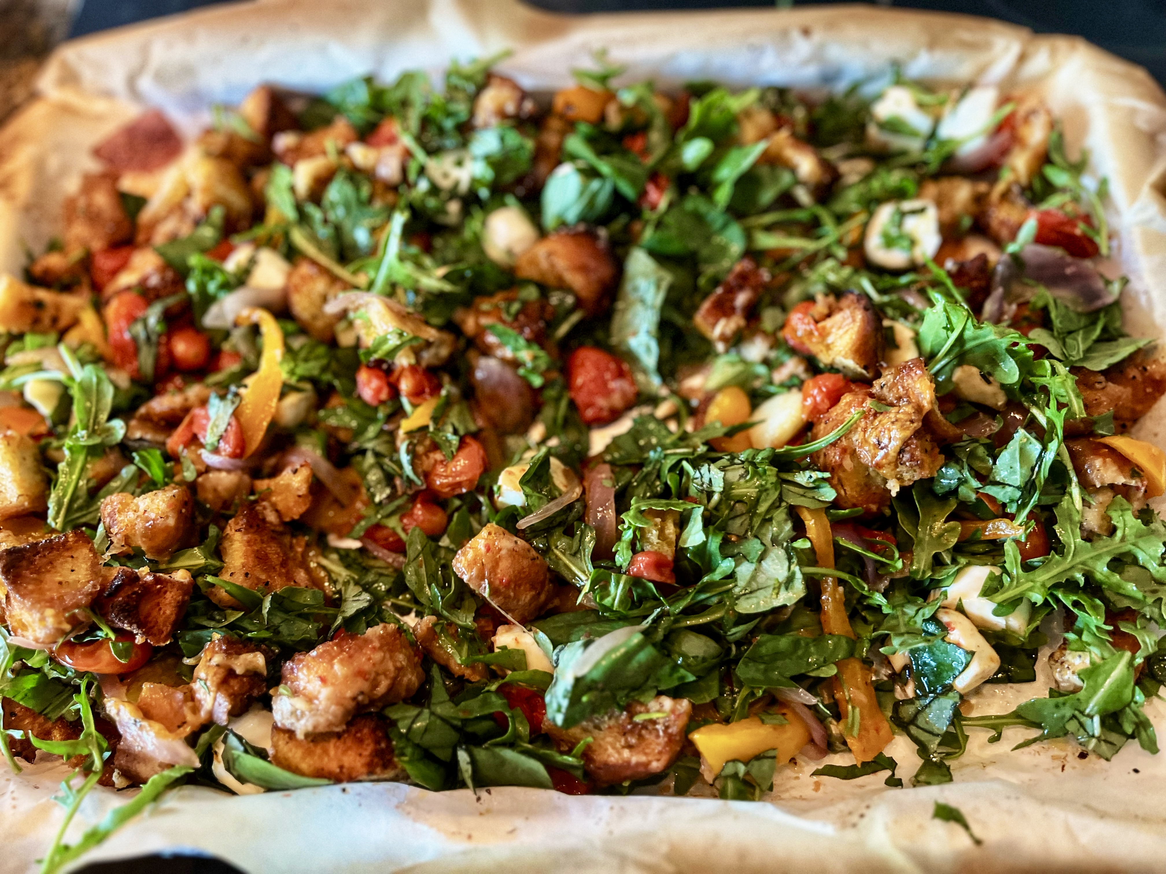 This recipe comes from ancient times, a culinary class I took in another life. It makes you break out the food processor. I normally try to avoid using it. However, it’s worth the extra clean up.