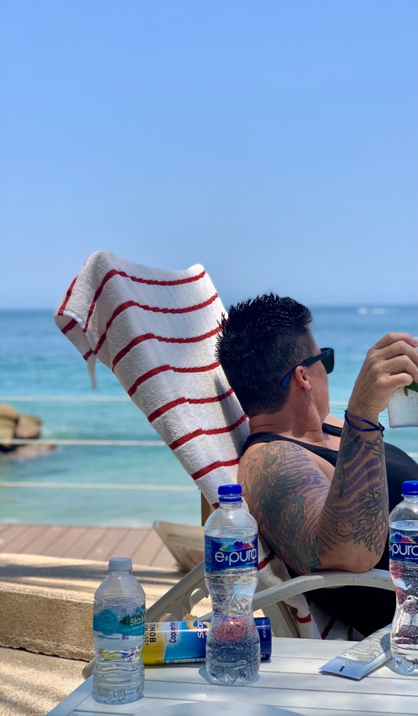 We spent a couple of our days in town. The beach in front of our resort (and most of the resorts nearby) wasn’t swimmable. I researched this before we booked and never saw that it was dangerous, so that was a real let down when we found that black flag waving. We took advantage of the ocean (which was cooler than the pool) down at Medano beach. Reachable by foot but way too hot for that, we took a short taxi ride to town. Our first stop was at the Sand Bar, a favorite of ours from our cruise stop to Cabo.