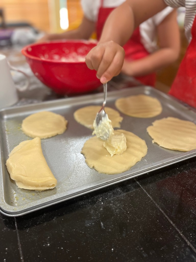 Next, we made mango cupcakes, and stuffed Georgian cheese breads.