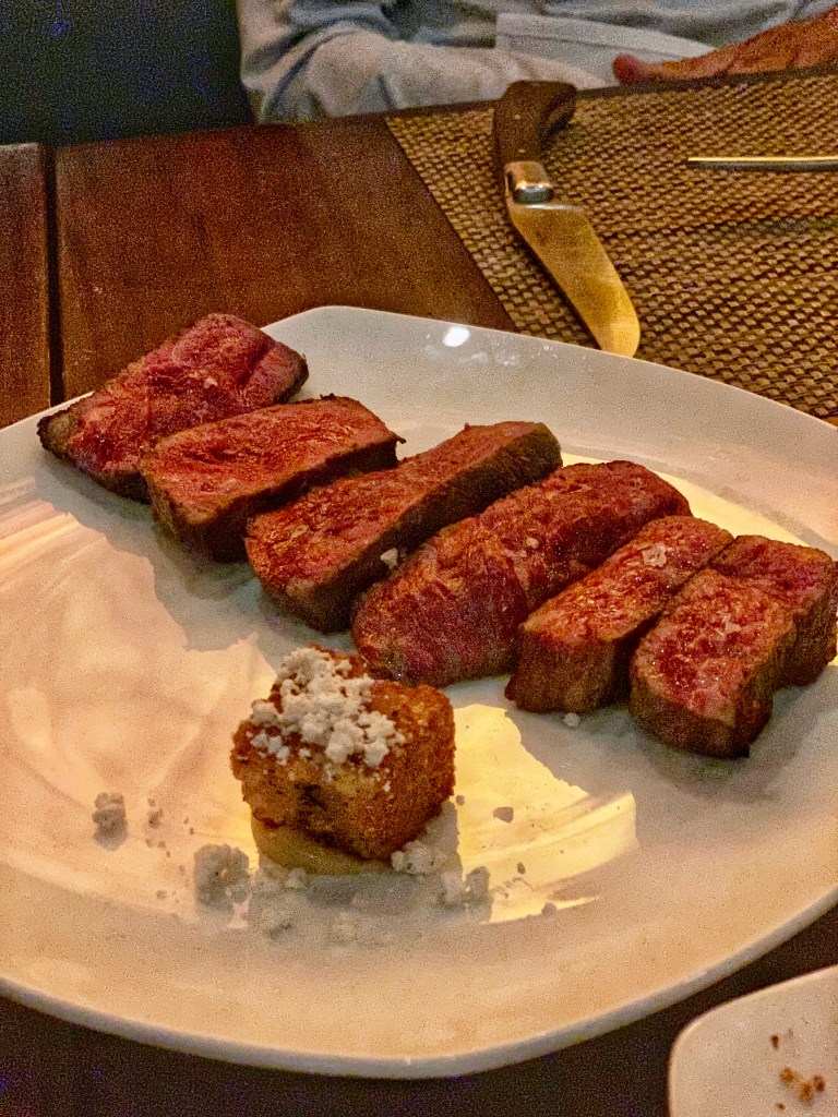 That piece on the right my friends, was the most incredible bite of steak I have ever had. It was like butter. Rich, umami and intense steak flavor, with melt in your mouth marbling. I am now forever ruined because I know that the rib eye in the fridge will never compare to that bite of meat.