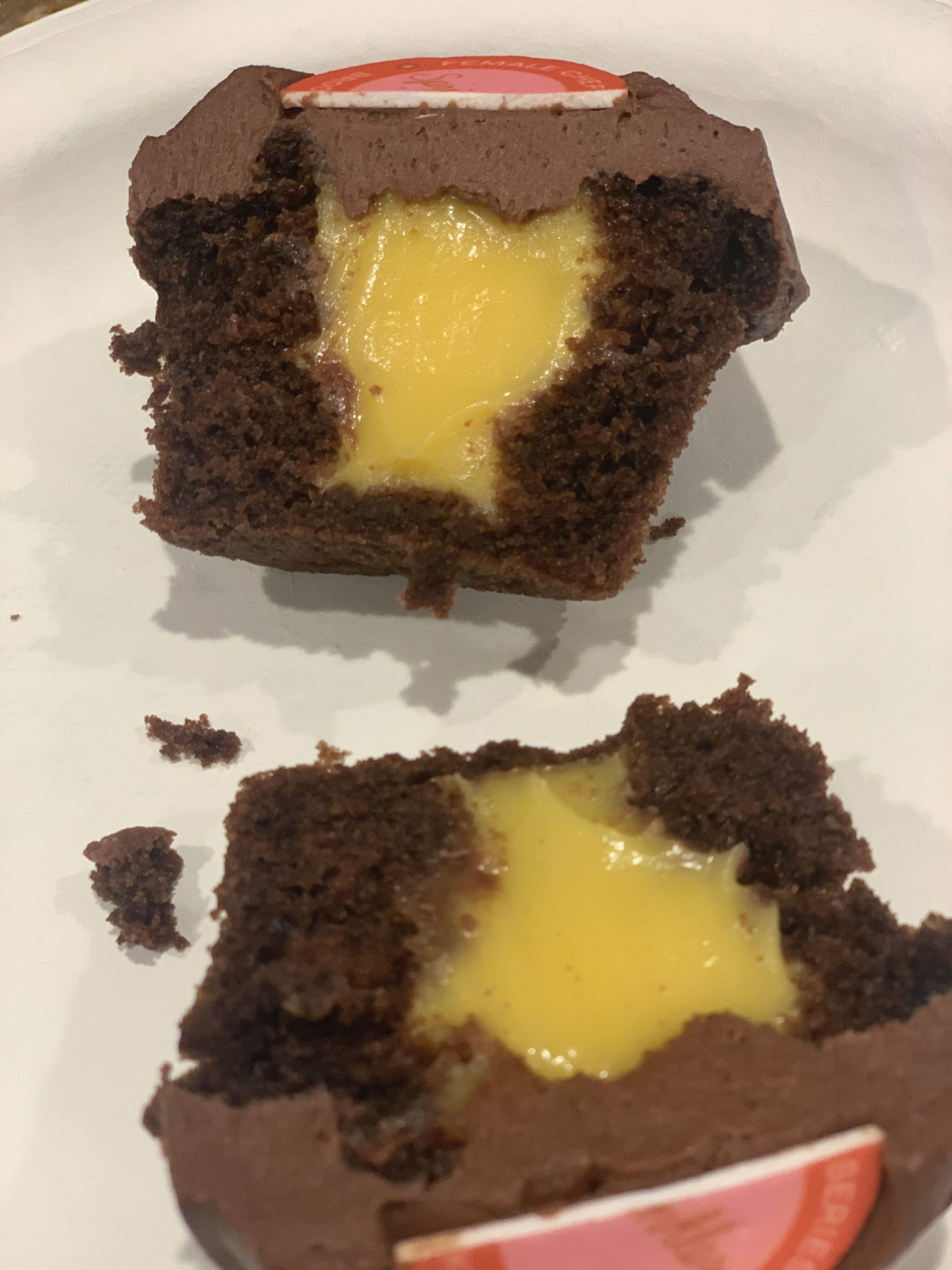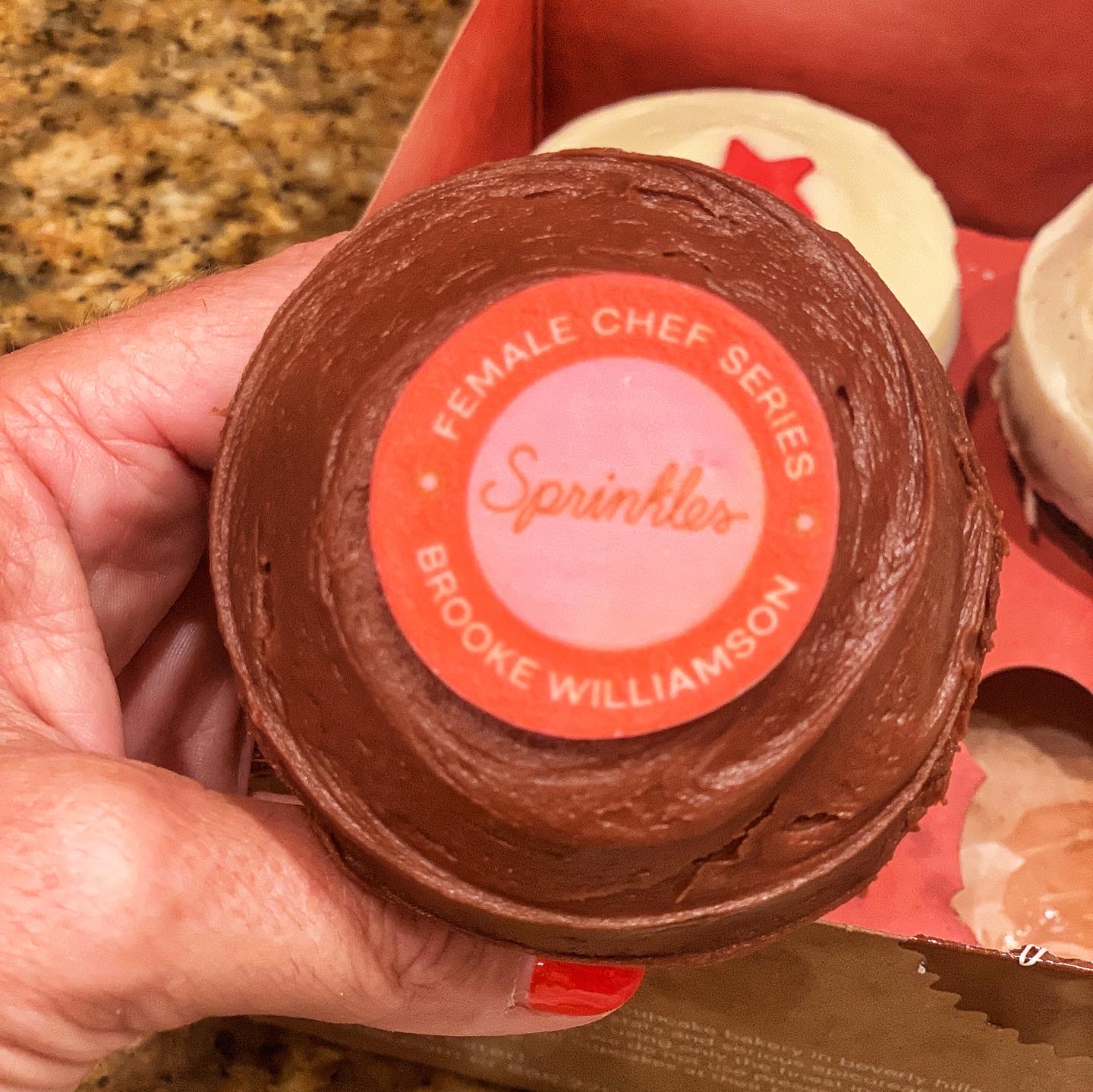 If you are a fan of Top Chef, or Chef Brooke Williamson or just cupcakes….Brooke partnered with Sprinkles cupcakes and put out a dark chocolate cupcake with passionfruit filling. I was on top of that and brought us home a couple. Delicious!