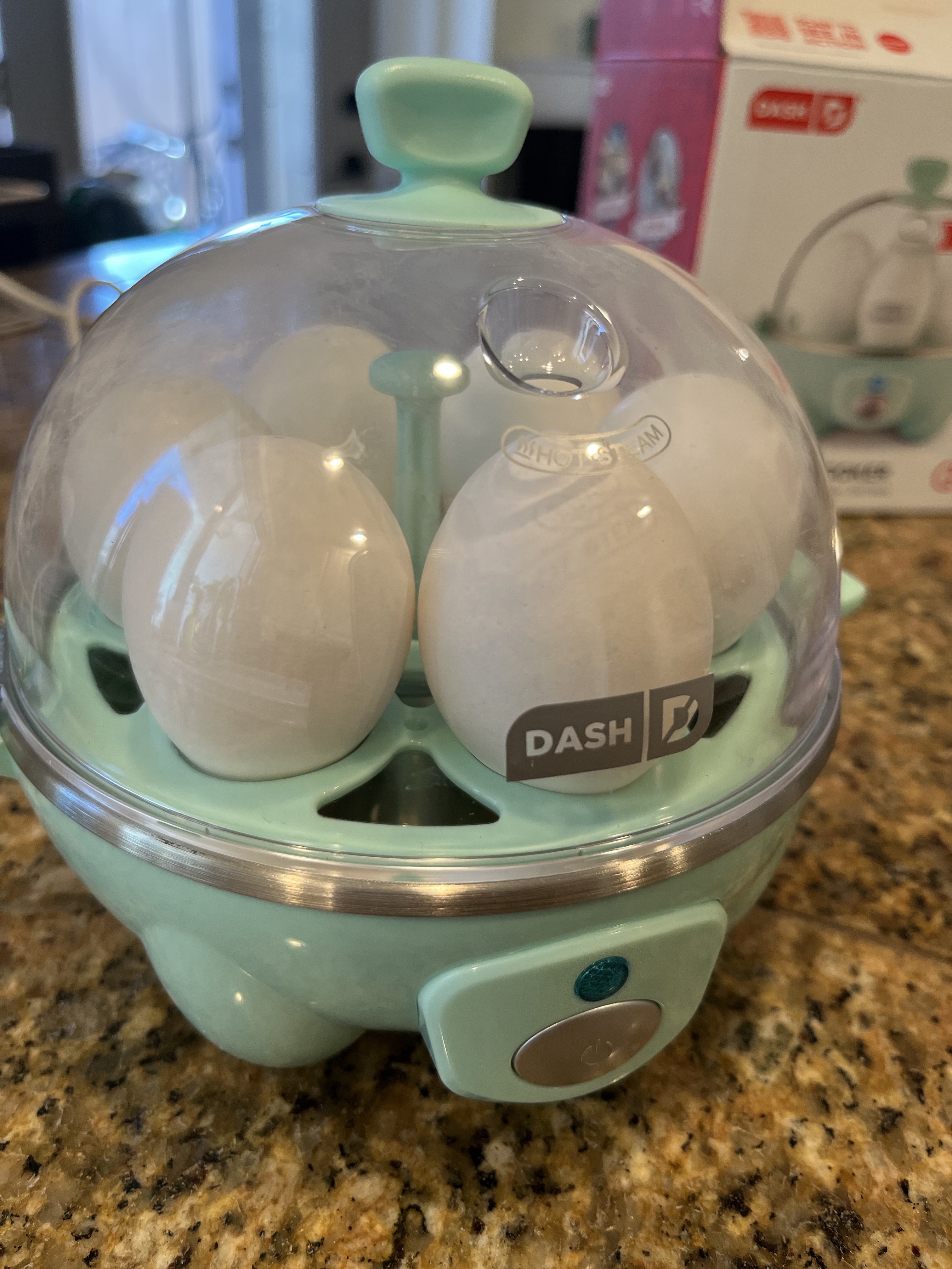 This egg cooker is AMAZING. Hard boiled eggs in less than 10 minutes, soft boiled in even less. AND no “watched pot never boils” situation.