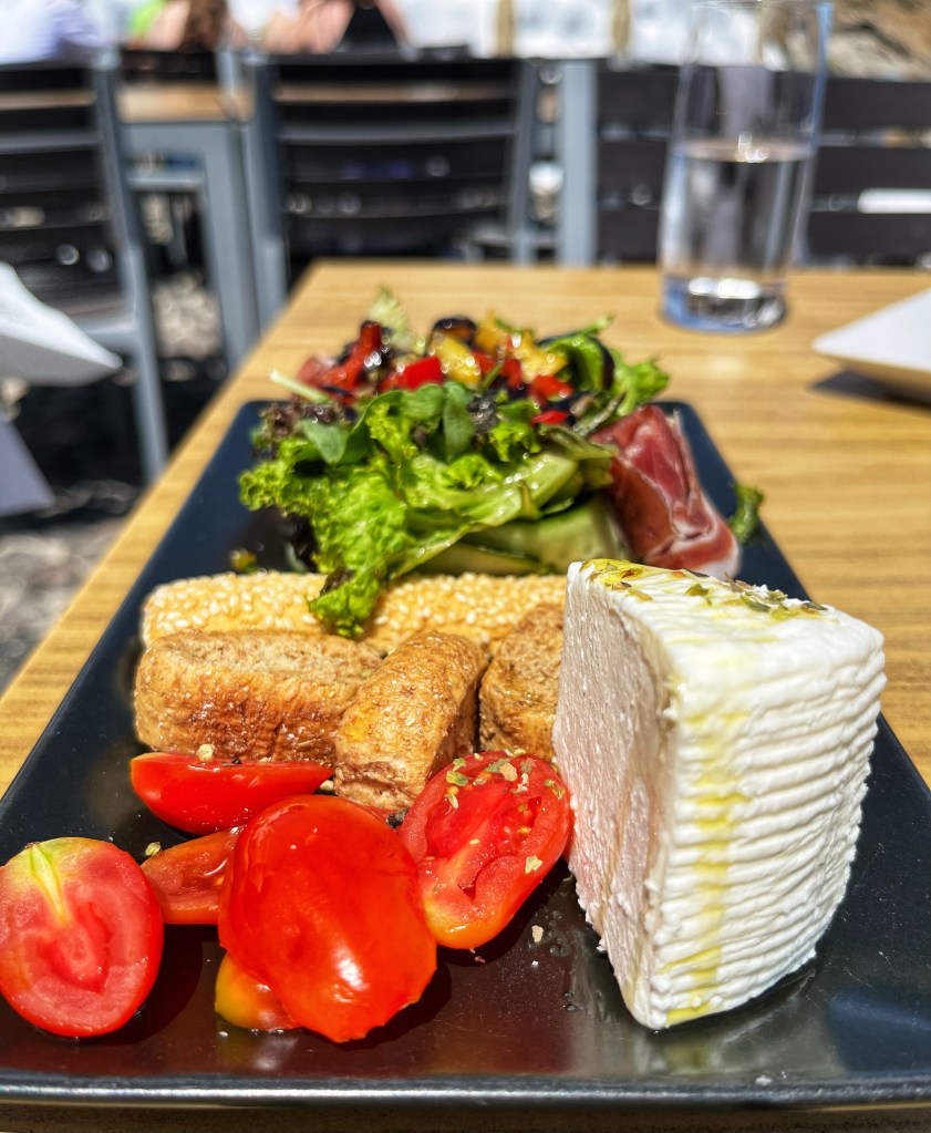 I ordered the Mussels Saganaki and a dry white wine (I can’t remember the varietal) and it was all really good. After dinner we popped into a little market by our hotel for some wine, water and snacks because no one wants to be left without options on vacation.